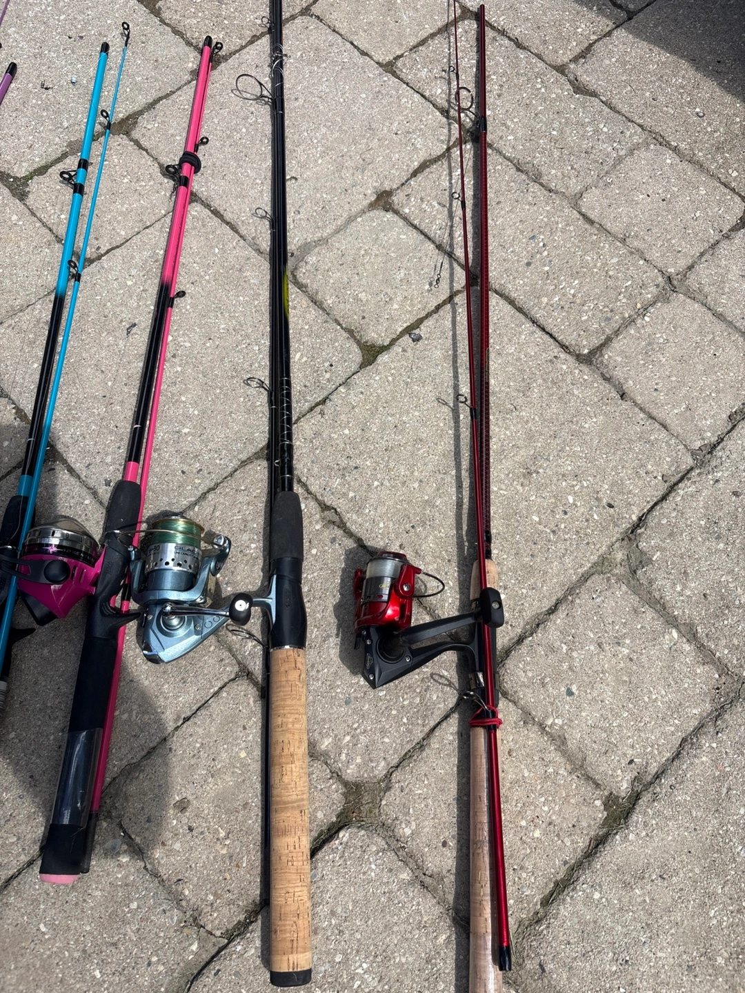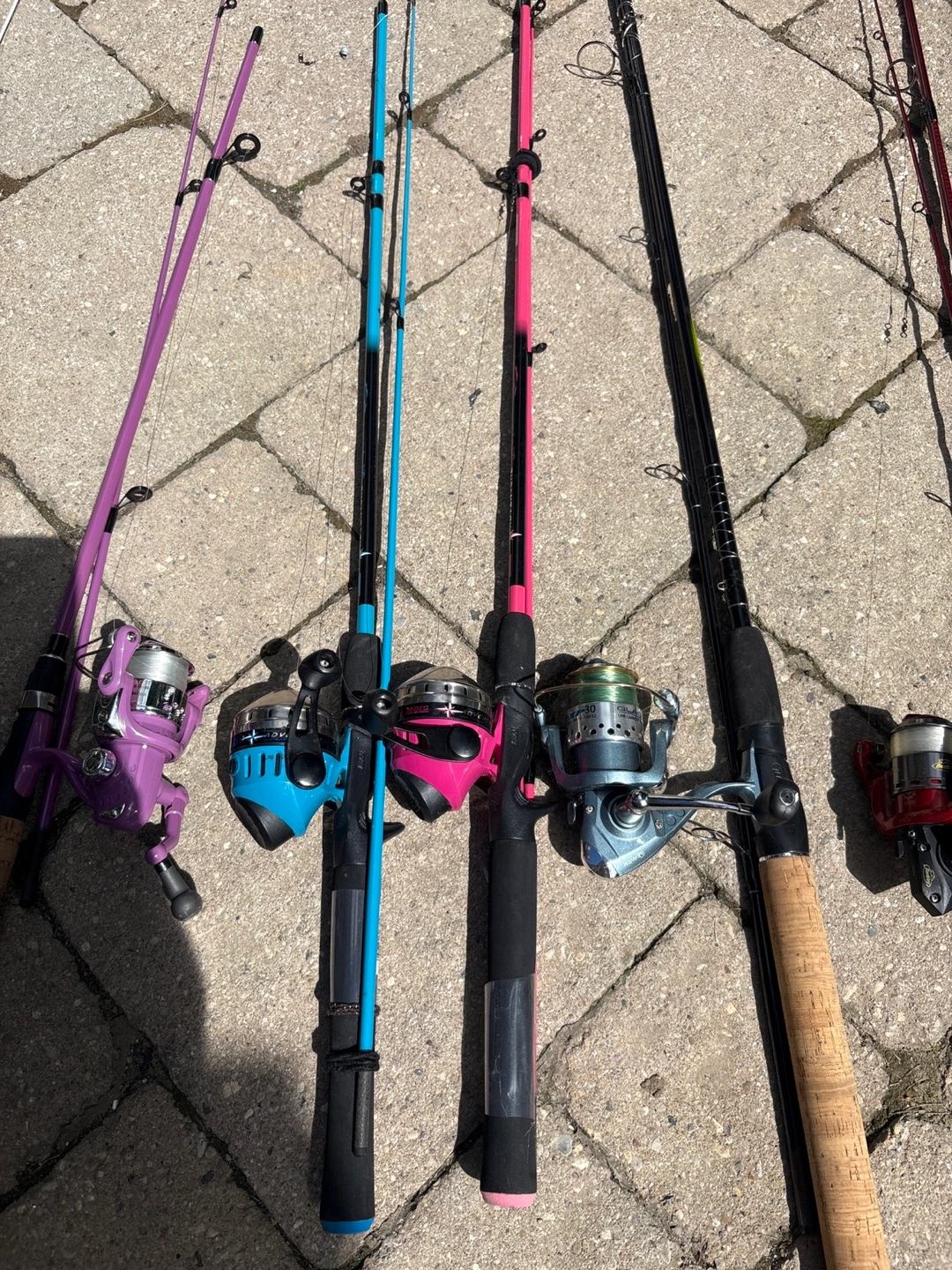 104A selection of fishing rods and reels in various colours. Perfect for anyone looking to get into fishing or add to their collection! Each rod comes with a reel attached. Selling as a bundle of 8 rods.