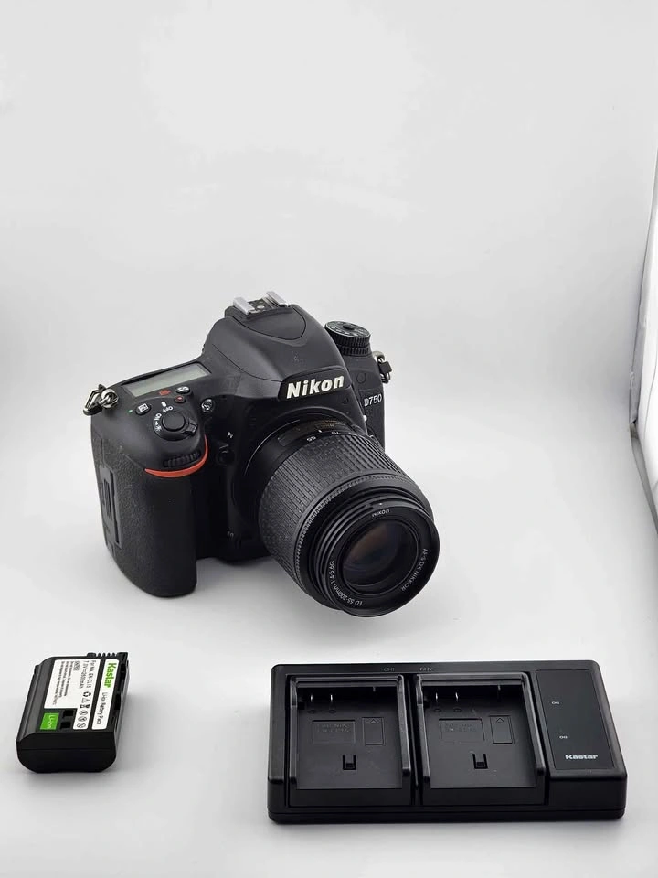 65Comes with one original battery and one generic. Able to input 2 sd cards. Comes with generic charger and 55-200 lens. Let me know if you're interested!