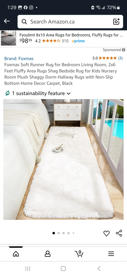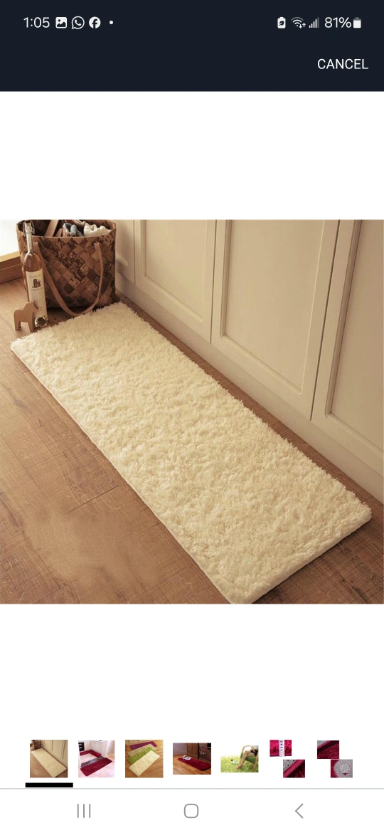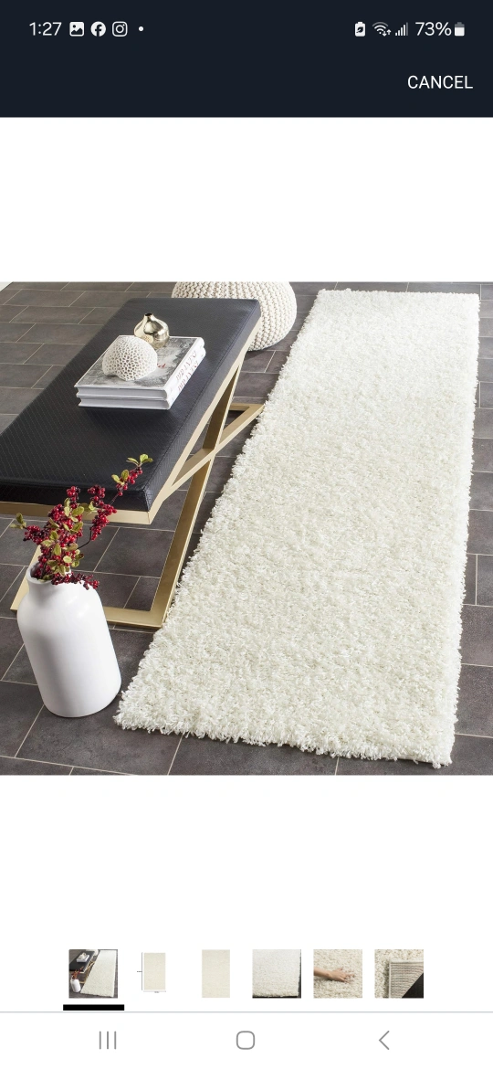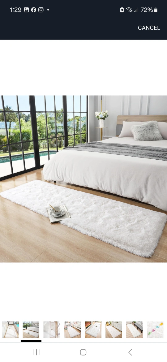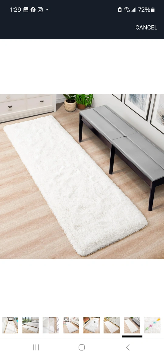 Selling a fluffy white shag area rug! It's brand new and would add a cozy touch to any room. It features a high pile surface, a sponge middle layer, and non-slip backing. It measures 2 feet Γ 6 feet 3 inches. Pu from Cambridge.
