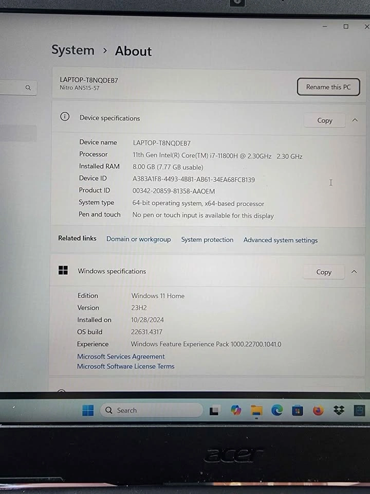 65Used. I7- 11TH GEN 2.3GHZ NVIDIA GeForce RTX 3050 Ti 512 SSD and 8GB RAM