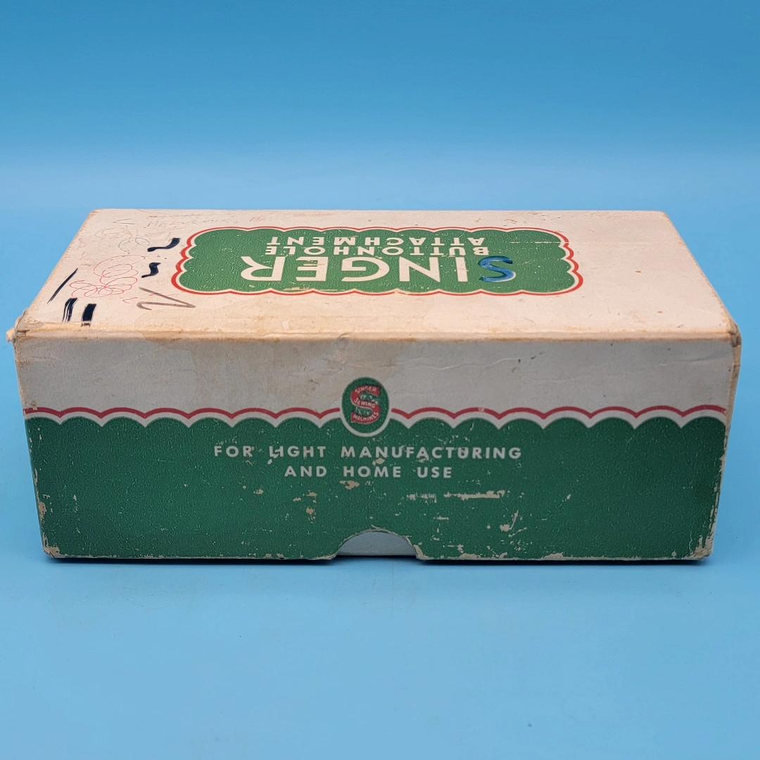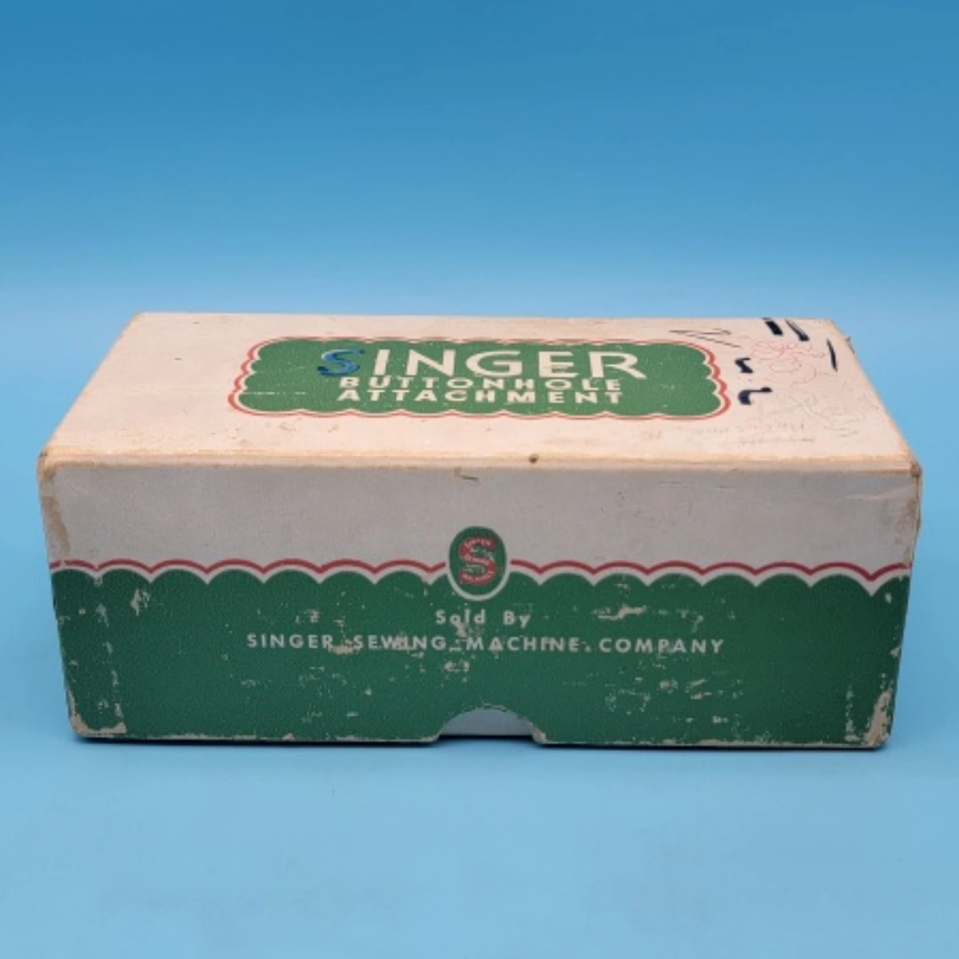 It comes with the original box, Buttonhole Attachment and instructions.
