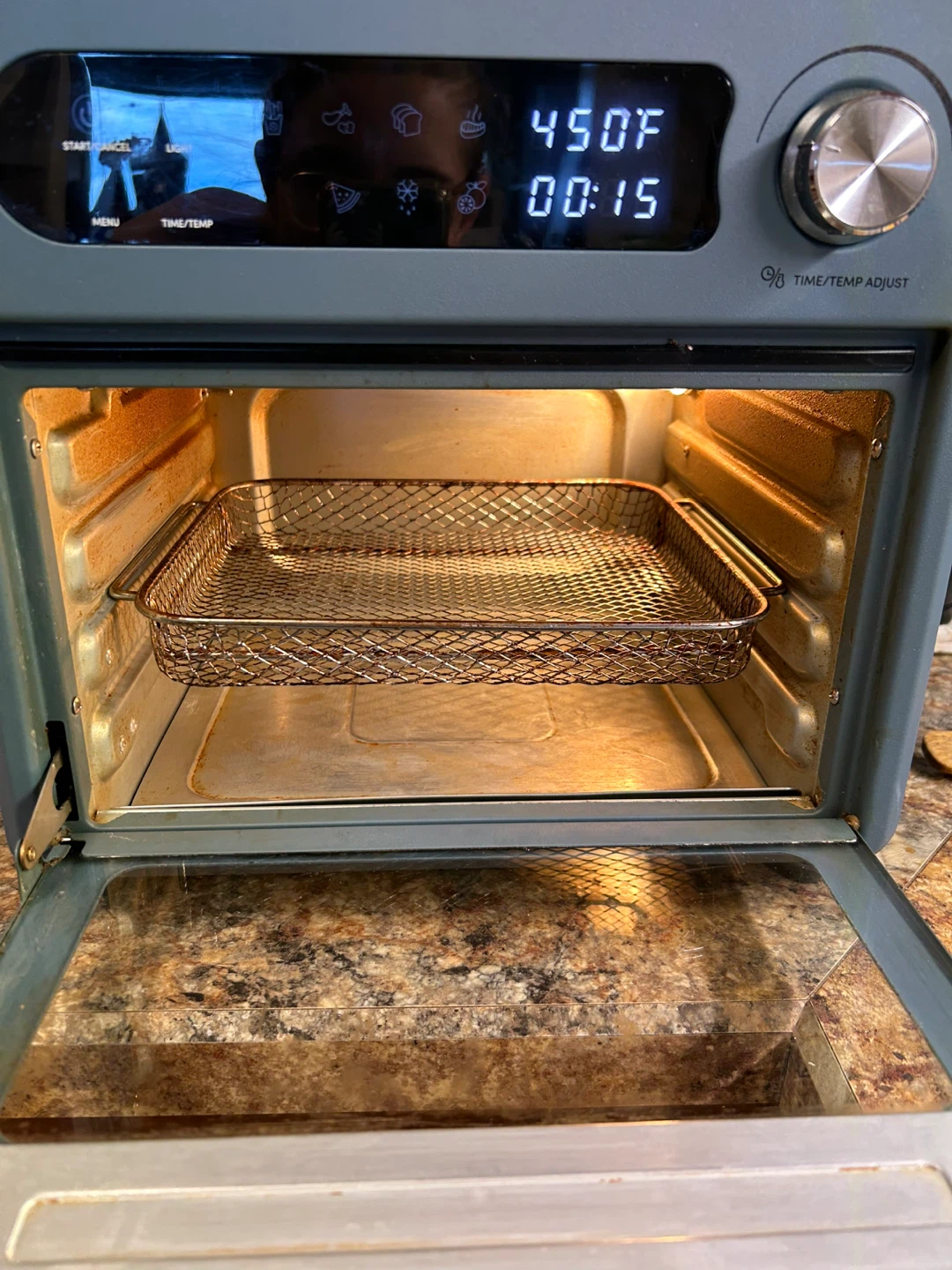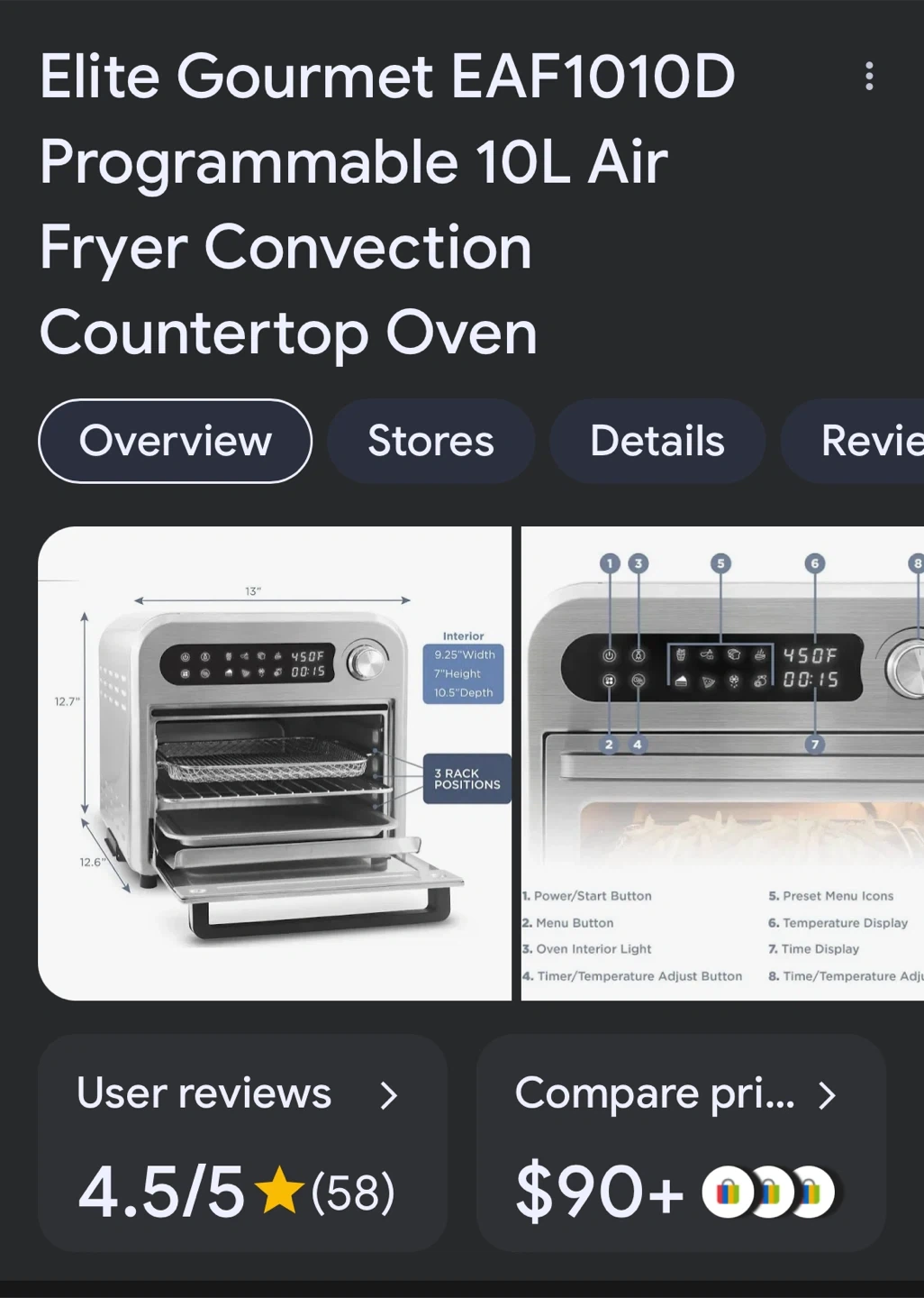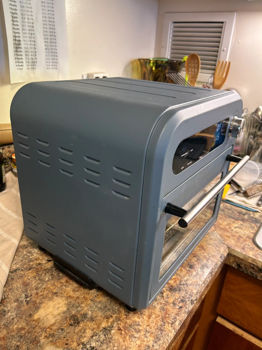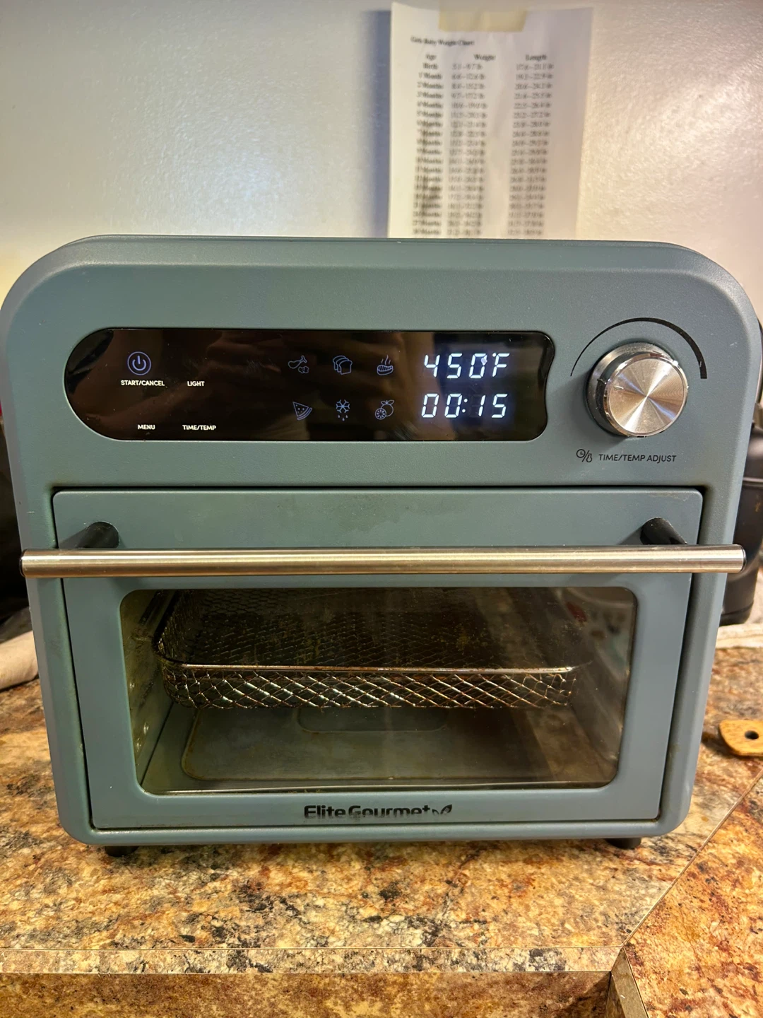Selling a used Elite Gourmet air fryer toaster oven. In working condition. I tried to clean it but may need another go! Normal retails for about $90 new.