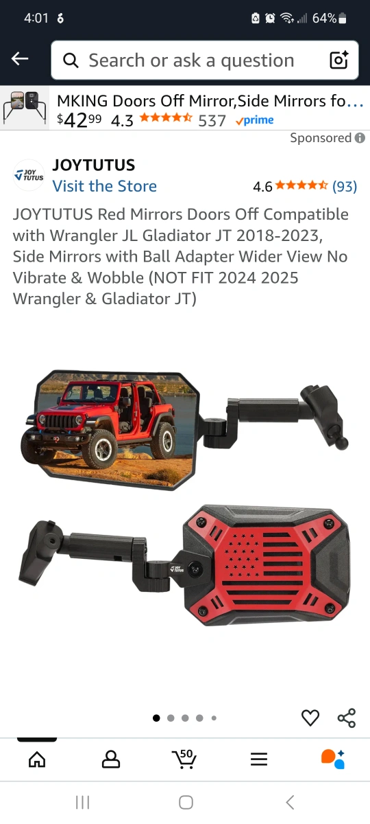 Red Mirrors Doors Off Compatible with Wrangler brand new