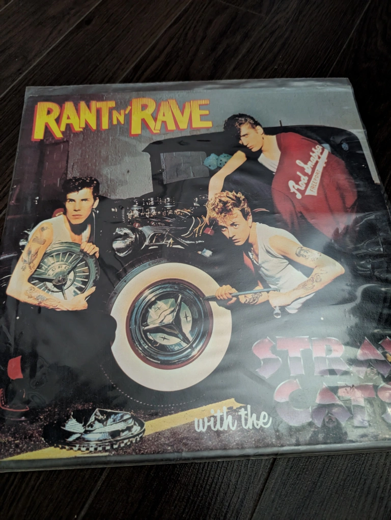 Selling a vinyl record album, Rant N' Rave with the Stray Cats! The cover art is pretty cool, featuring the band with a classic car. Great for any vinyl collector or Stray Cats fan