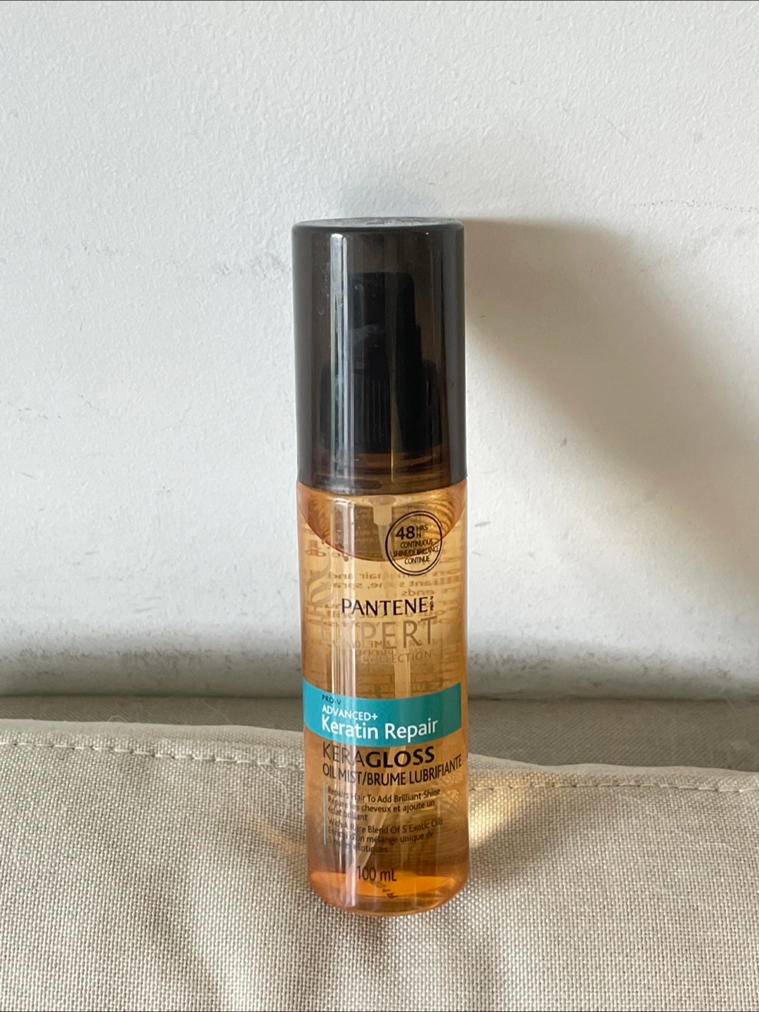 I'm selling a bottle of Pantene Expert Keragloss Oil Mist. It's designed to add brilliant shine to your hair and contains a rare blend of 5 exotic oils. The bottle contains 95ml of product