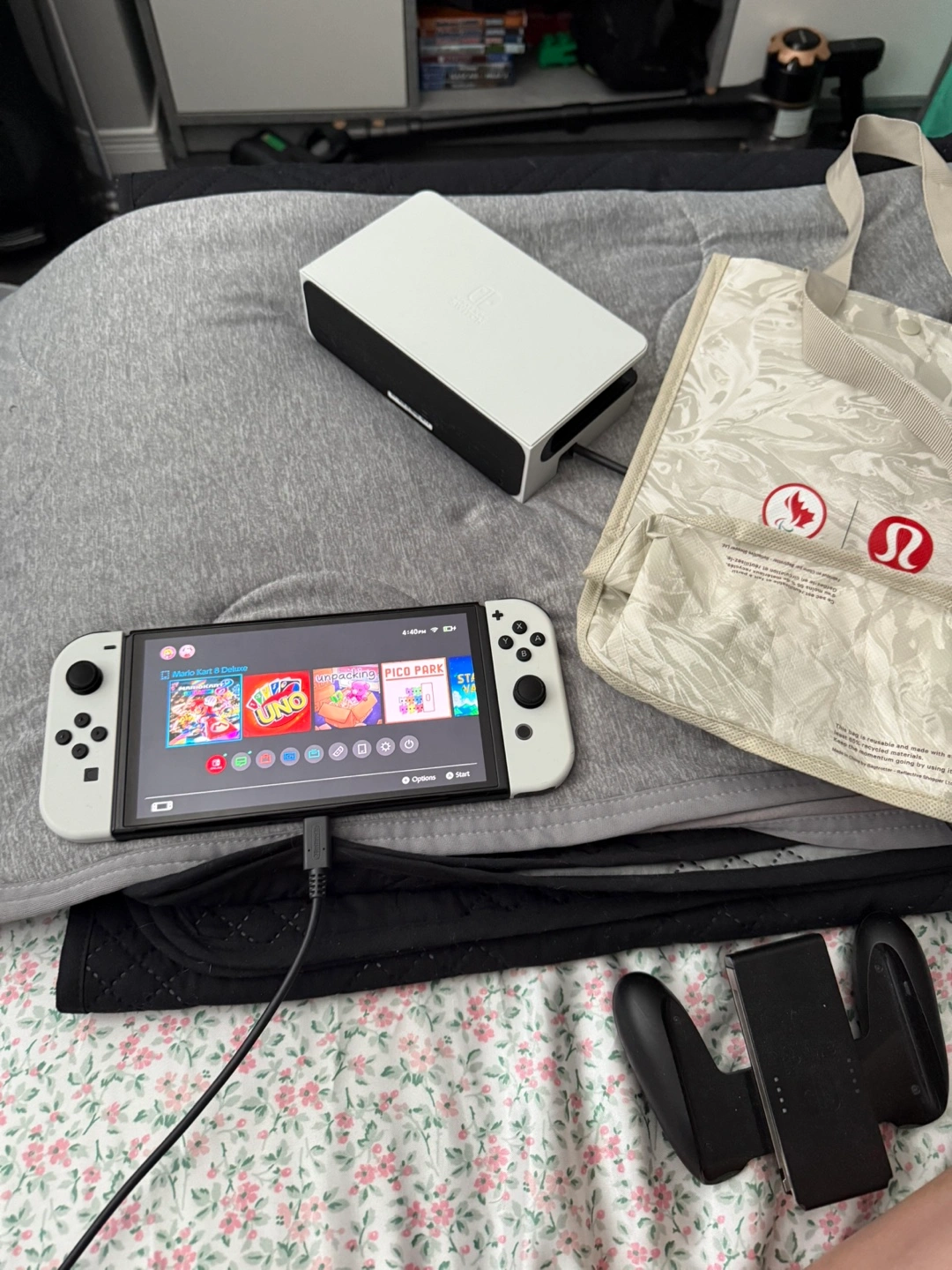 Selling a white Nintendo Switch OLED model! It comes with the dock and joy-con grip. The screen is in great condition.also comes with the controller an all plugs all original stuff!
