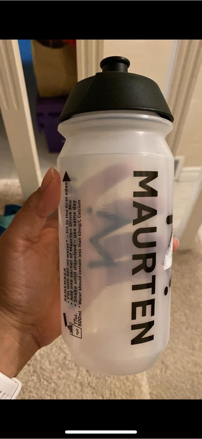New Maurten water bottle! It's 500ml (17oz) and perfect for mixing Maurten Drink Mix. Just fill with water to the first edge, add a sachet, and shake until dissolved. Water should contain less than 40mg/L Calcium
