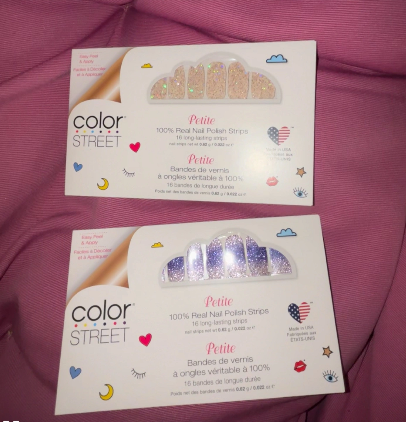 I'm selling two sets of Color Street nail polish strips, both in the petite size! Each set contains 16 long-lasting strips of 100% real nail polish. Easy peel and apply