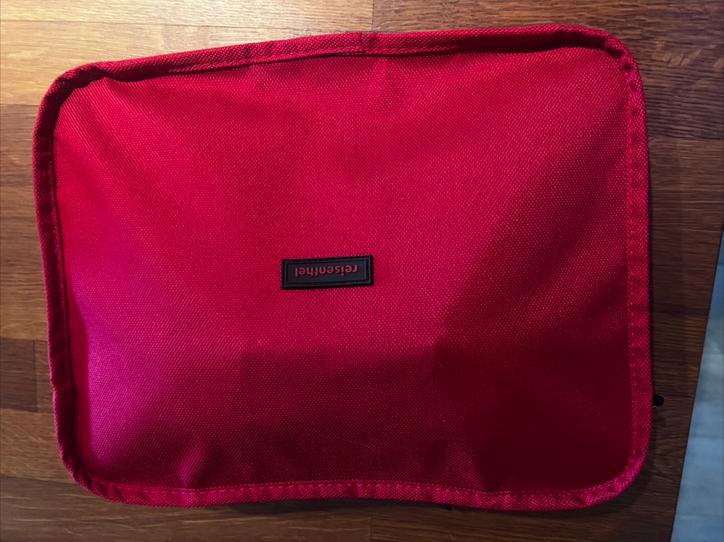 Compact grocery kart that folds up and can fit into a tote. Super convenient to transport while running errands. Just unzip, pop out the wheels and lock into place and you’re good to go.
