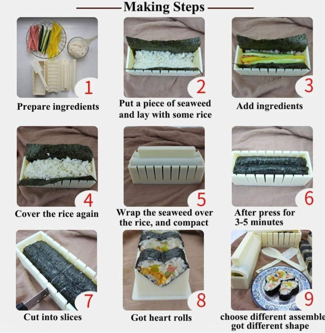 It’s the ultimate 3-in-1 miracle mold that helps you prepare heart-shaped sushi, as well as large and small square-shaped sushi at home.
