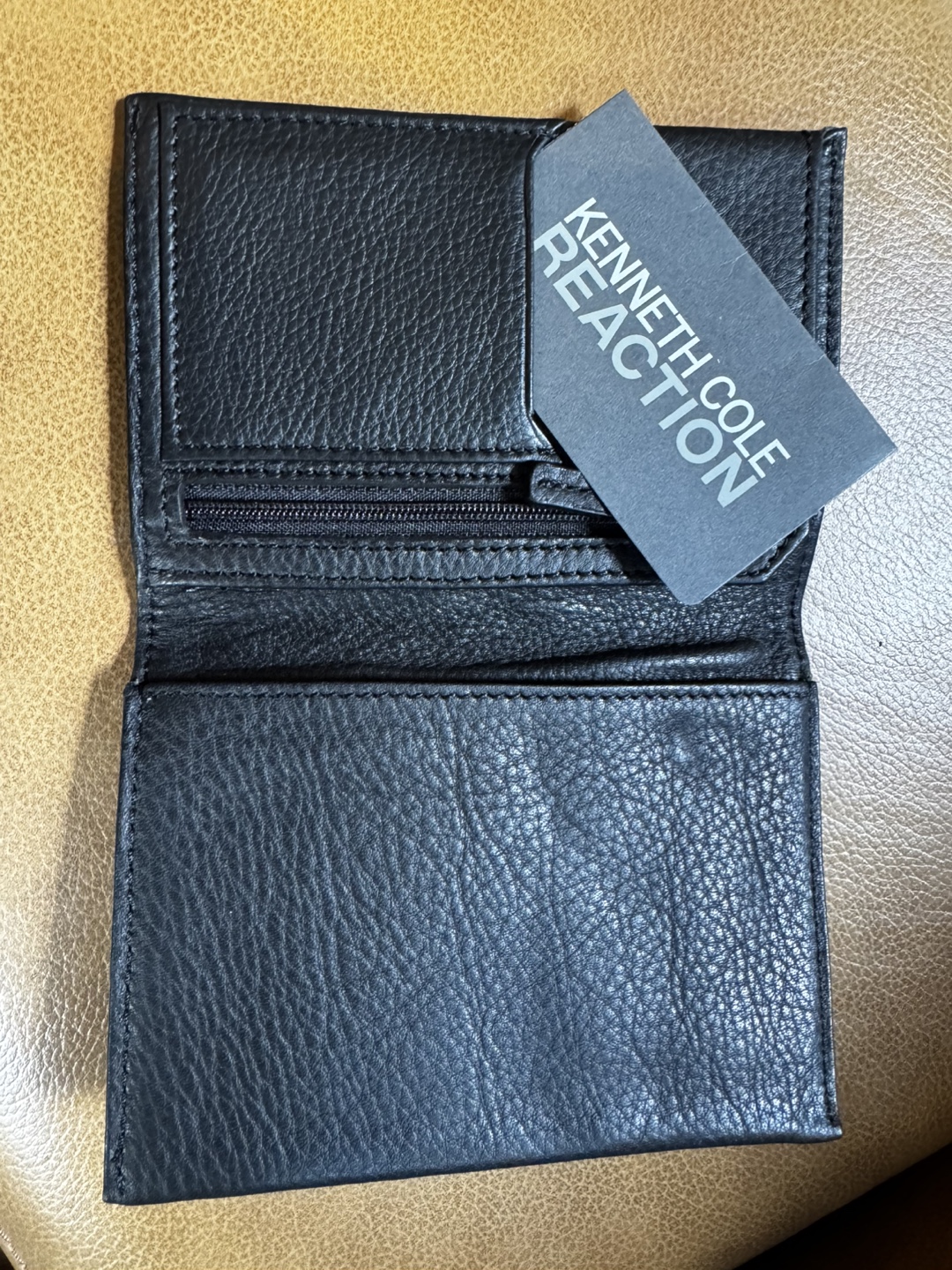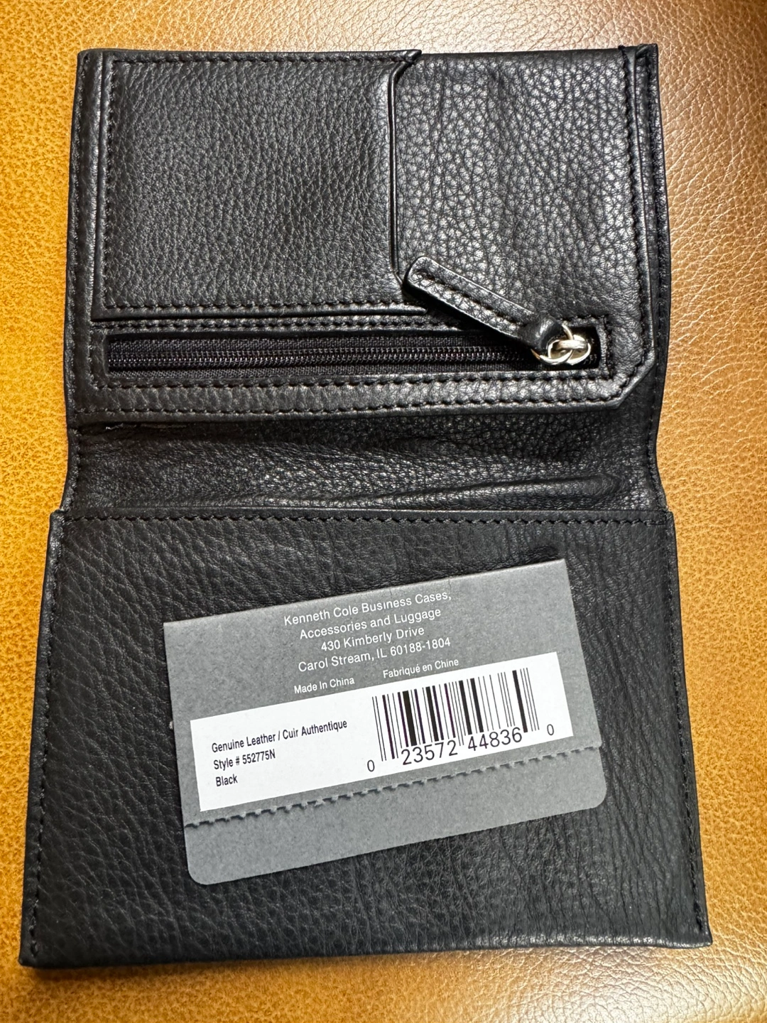 Selling a Kenneth Cole Reaction passport wallet in black leather. It's in great condition and features a zippered compartment. The style number is 552775N.