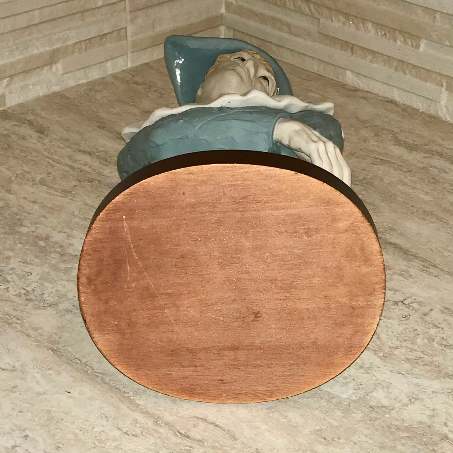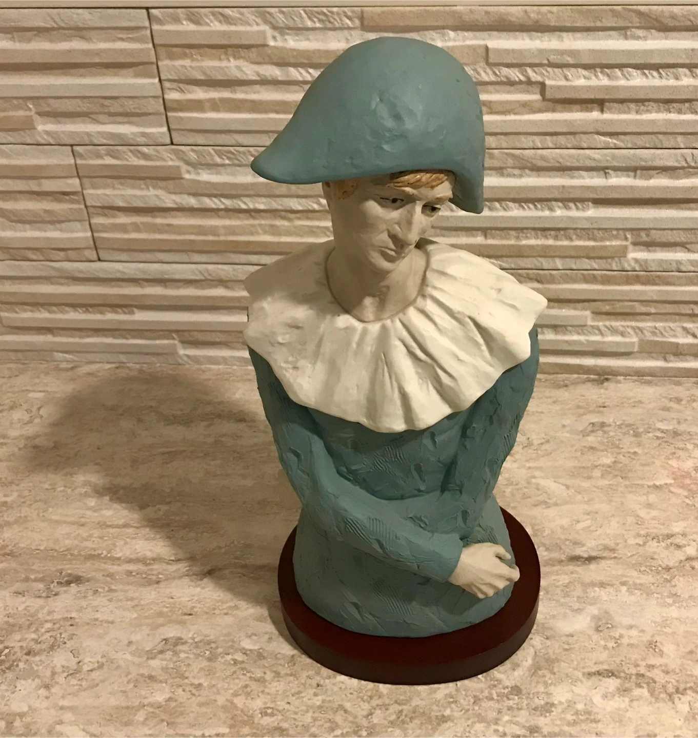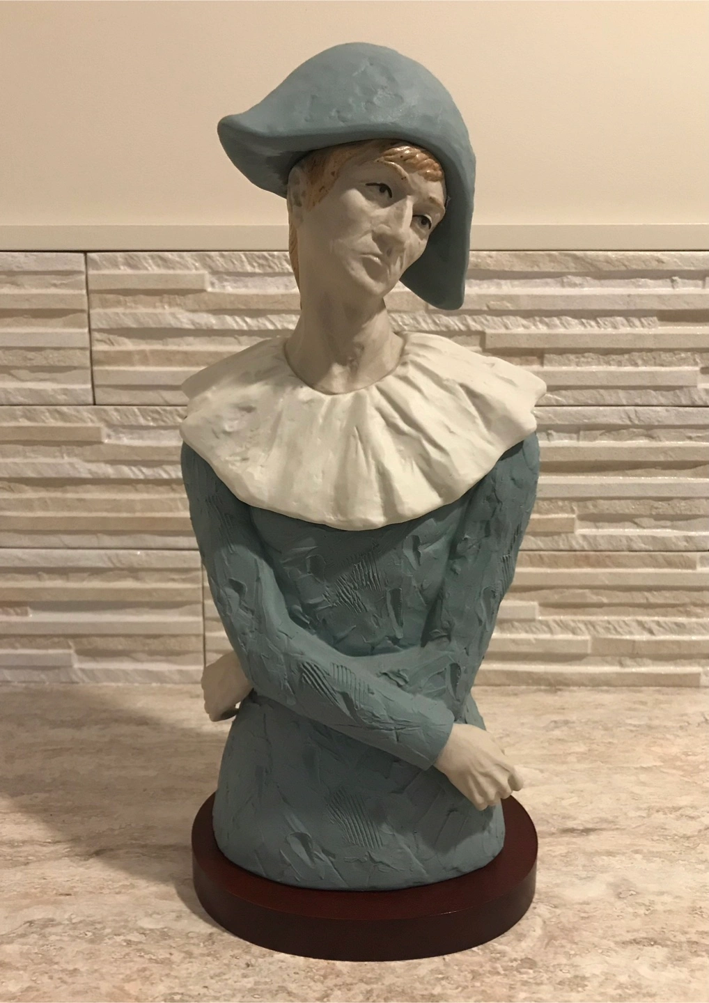 Warm brown real wood pedestal, Beautiful WEDGEWOOD BLUE Boy Mime