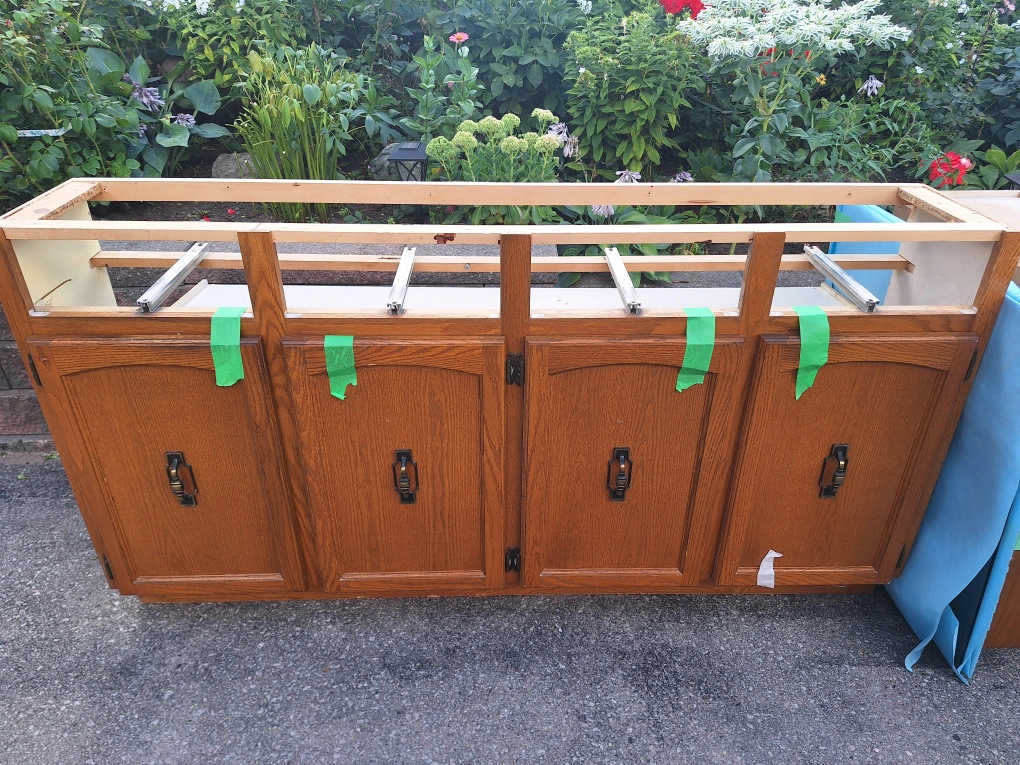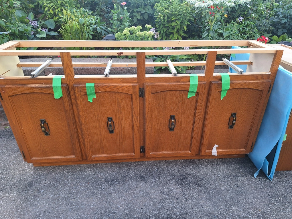 - Image 3-5: Top cabinets row - box is 66 inches wide, by 21.75 inches height with 1 foot depth. Cabinet doors are 15 inches wide by 21 inches height. Asking $50