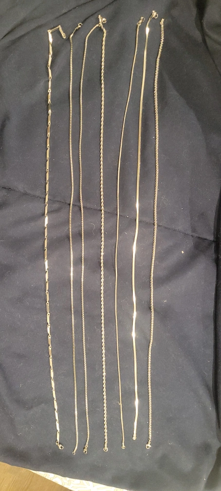 Selling a bundle of assorted necklaces. There are 6 necklaces in total, with different styles and lengths. Perfect for layering or wearing individually to add a touch of shine to any outfit