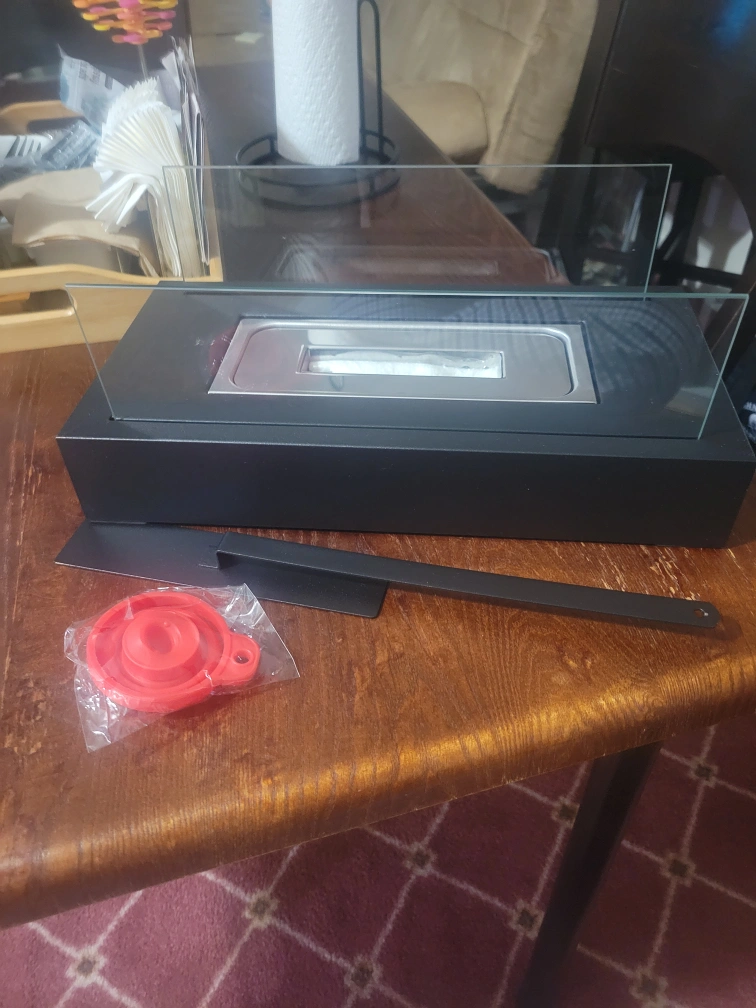 I'm selling a tabletop fireplace. It's a bio ethanol kamin. It has a modern design and uses clean fuel. It also makes a beautiful flame. It comes with the box. Also included is a funnel and tool. Never been used and no fuel
