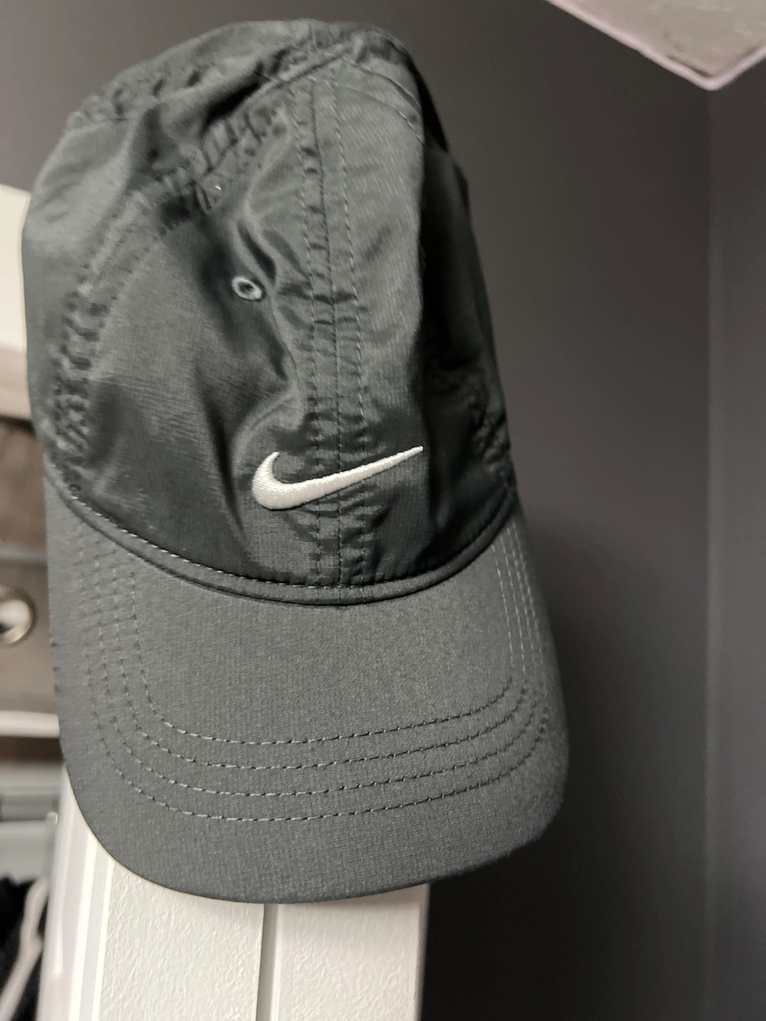 Selling a Nike hat in black. It's in great condition and features the classic Nike swoosh logo. Perfect for everyday wear!