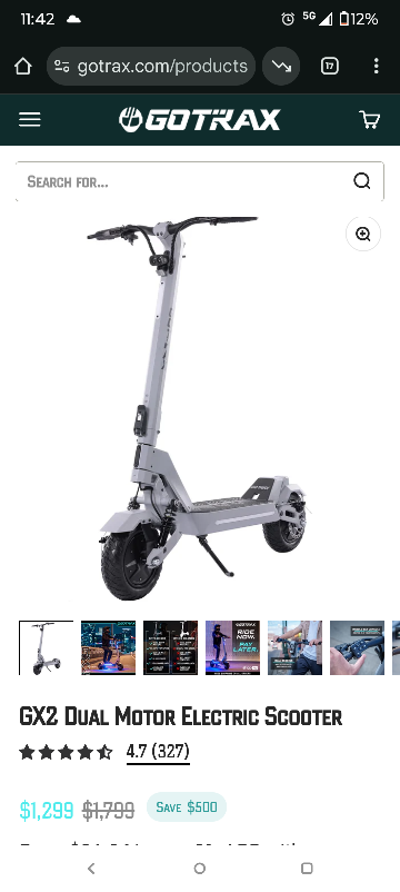 GOTRAX GX2 Dual Motor Electric Scooter. 35mph top speed and top range is 45 miles. It's in great shape just needs front brakes and ready for a new home! This scooter is perfect for getting around town. Originally, it retailed for $1,799, but it's now available at a great price. only 375 miles but will go up as I still ride the scooter