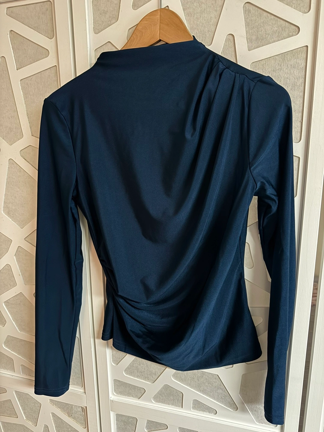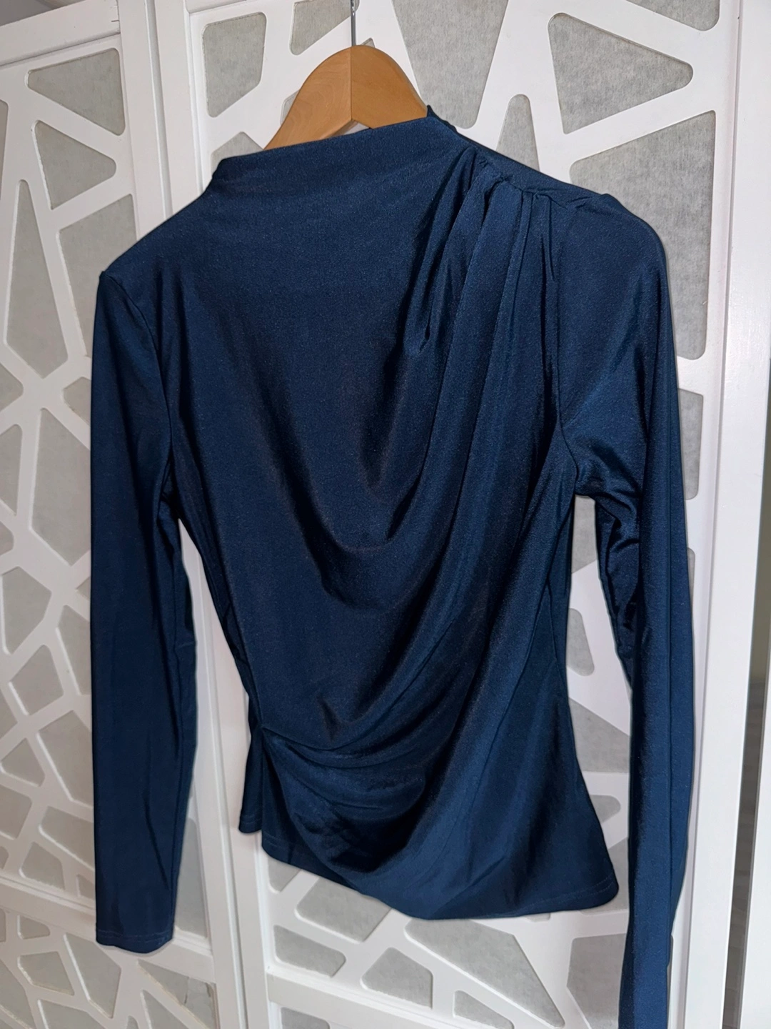 This is a navy blue long sleeve top. It is in great condition and ready for a new home! It's perfect for dressing up or down, so versatile for any occasion