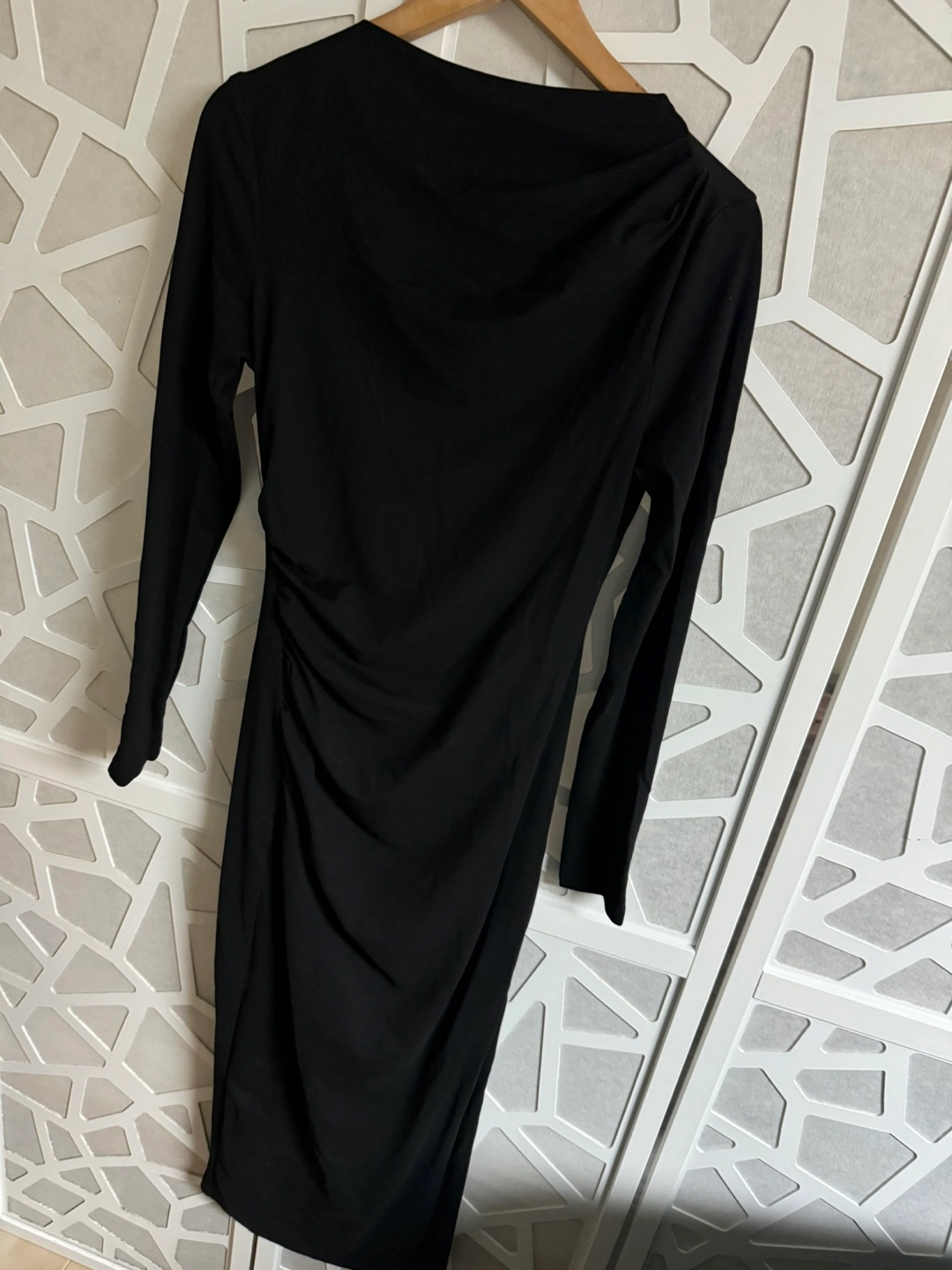 Selling a black long sleeve dress. It's in great condition and perfect for any occasion! The dress has a stylish design and a flattering fit. Feel free to reach out if you're interested!
