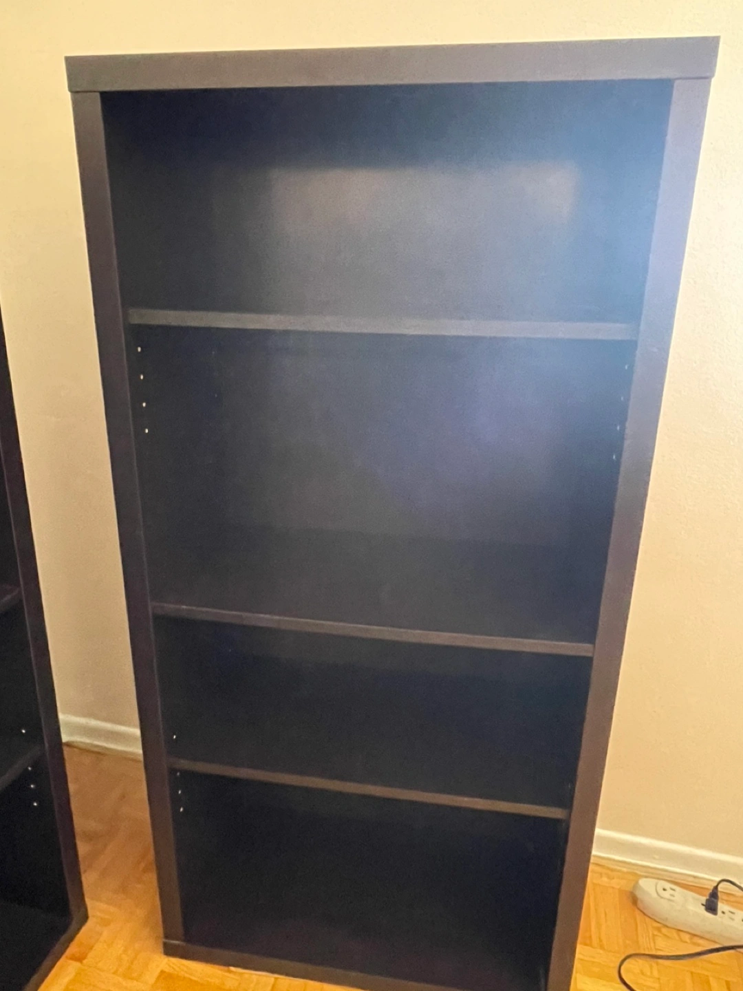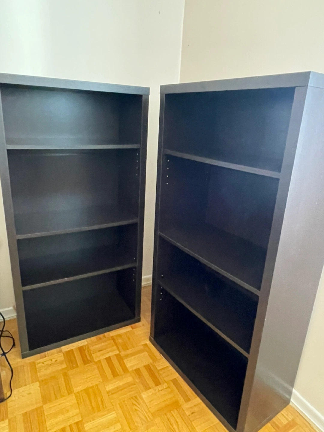 Selling 2 espresso brown bookcases in excellent condition! Adjustable shelves. Perfect for storing books, displaying decor, or organizing your space. Very sturdy and plenty of shelf space for all your needs. Wayfair product-paid $75 each-asking $40 for the pair. Selling as I need to reorganize space.