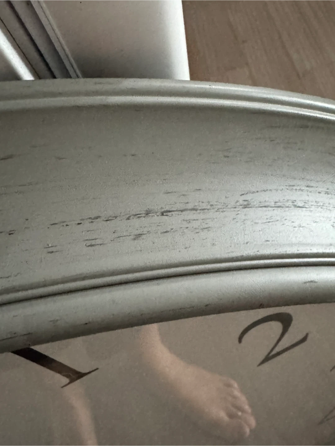 Selling a wall clock by Greenwich Clock Company. Diameter: 30”. It features a classic design with easy-to-read numbers and a grey/green tone frame. The clock requires one AA battery to operate. Perfect for adding a touch of elegance to any room!
