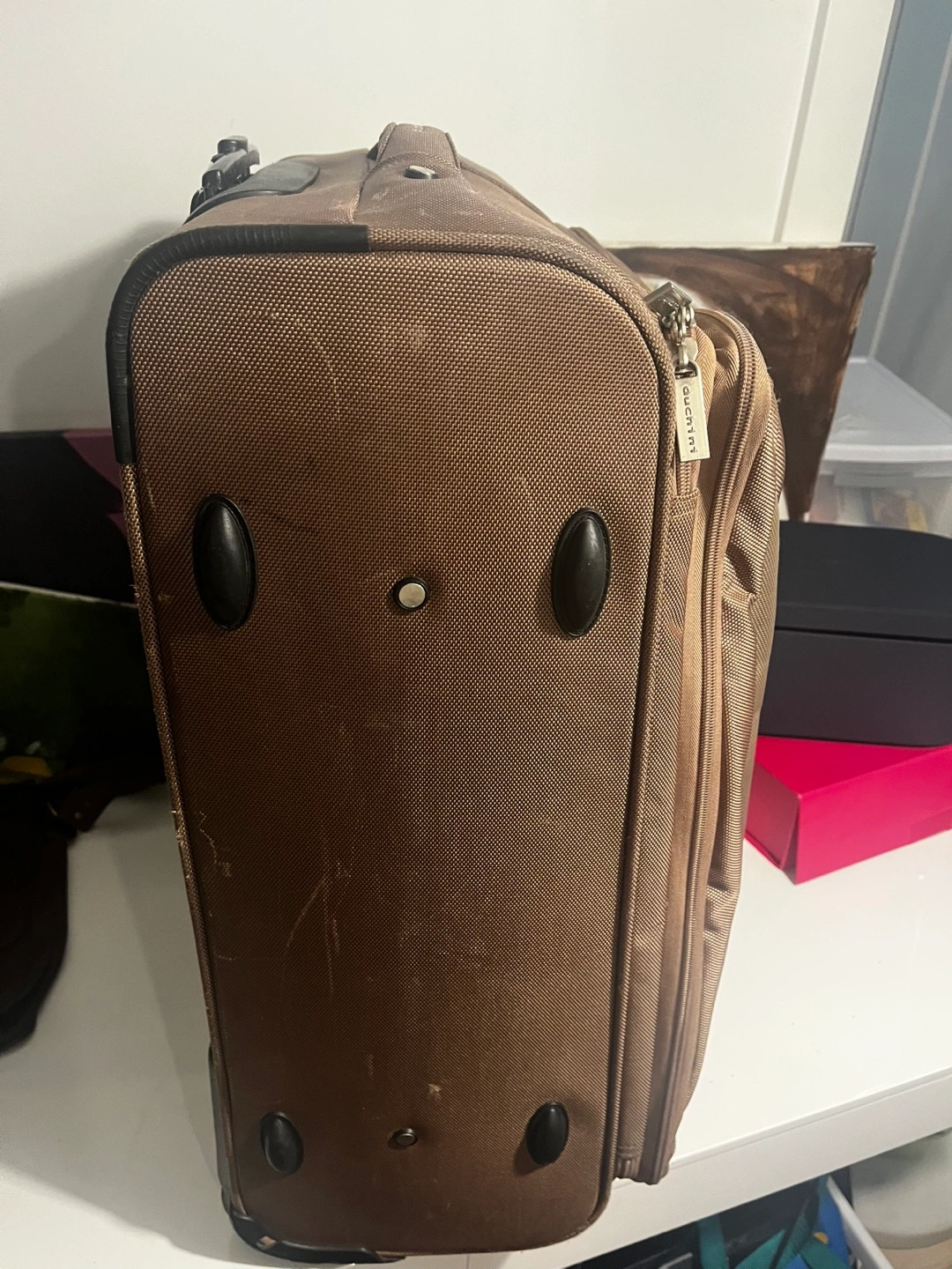Selling a used Delsey luggage in brown. It's in decent condition and ready for its next adventure!