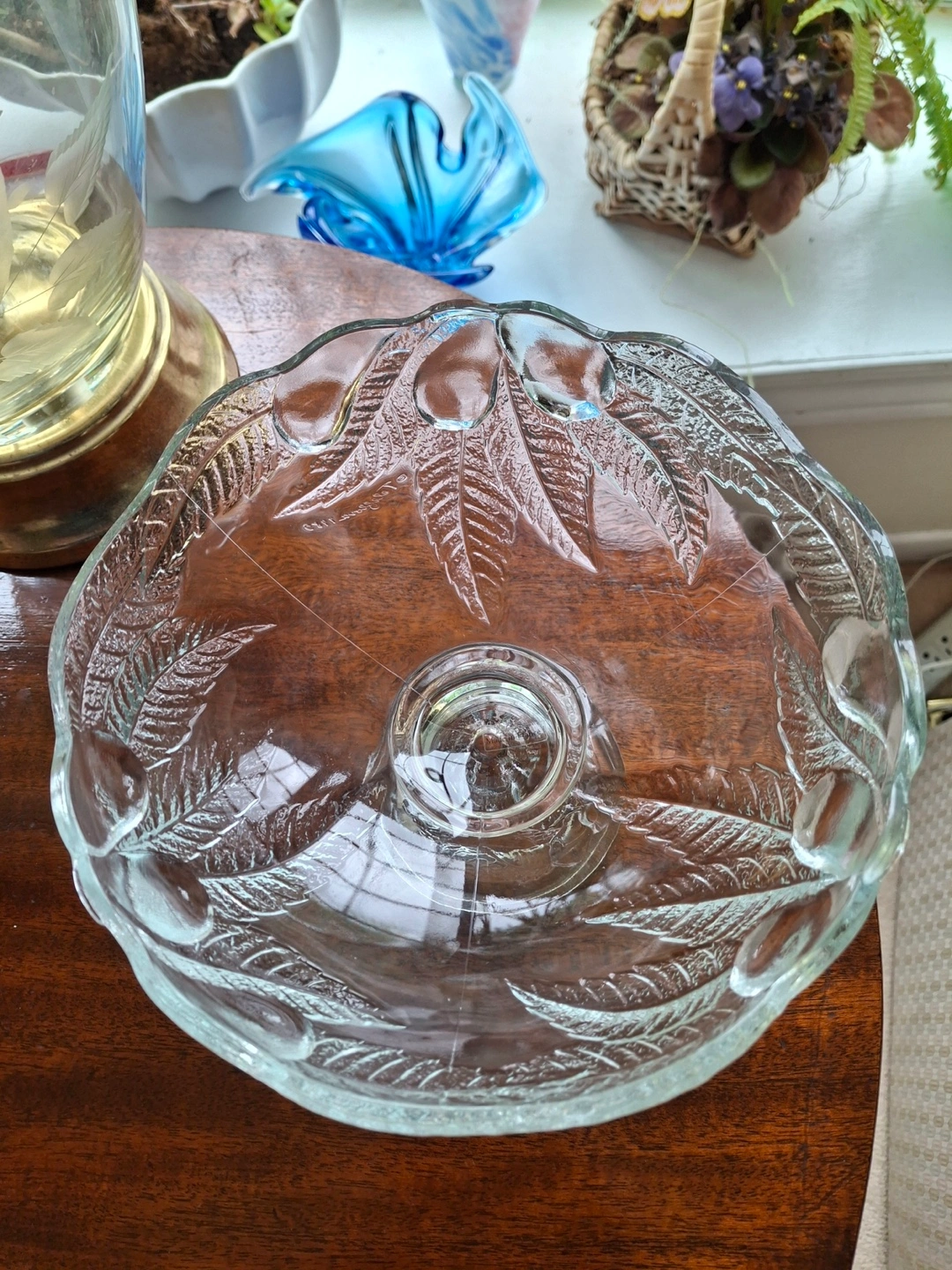 Small clear glass pedestal bowl, made in France