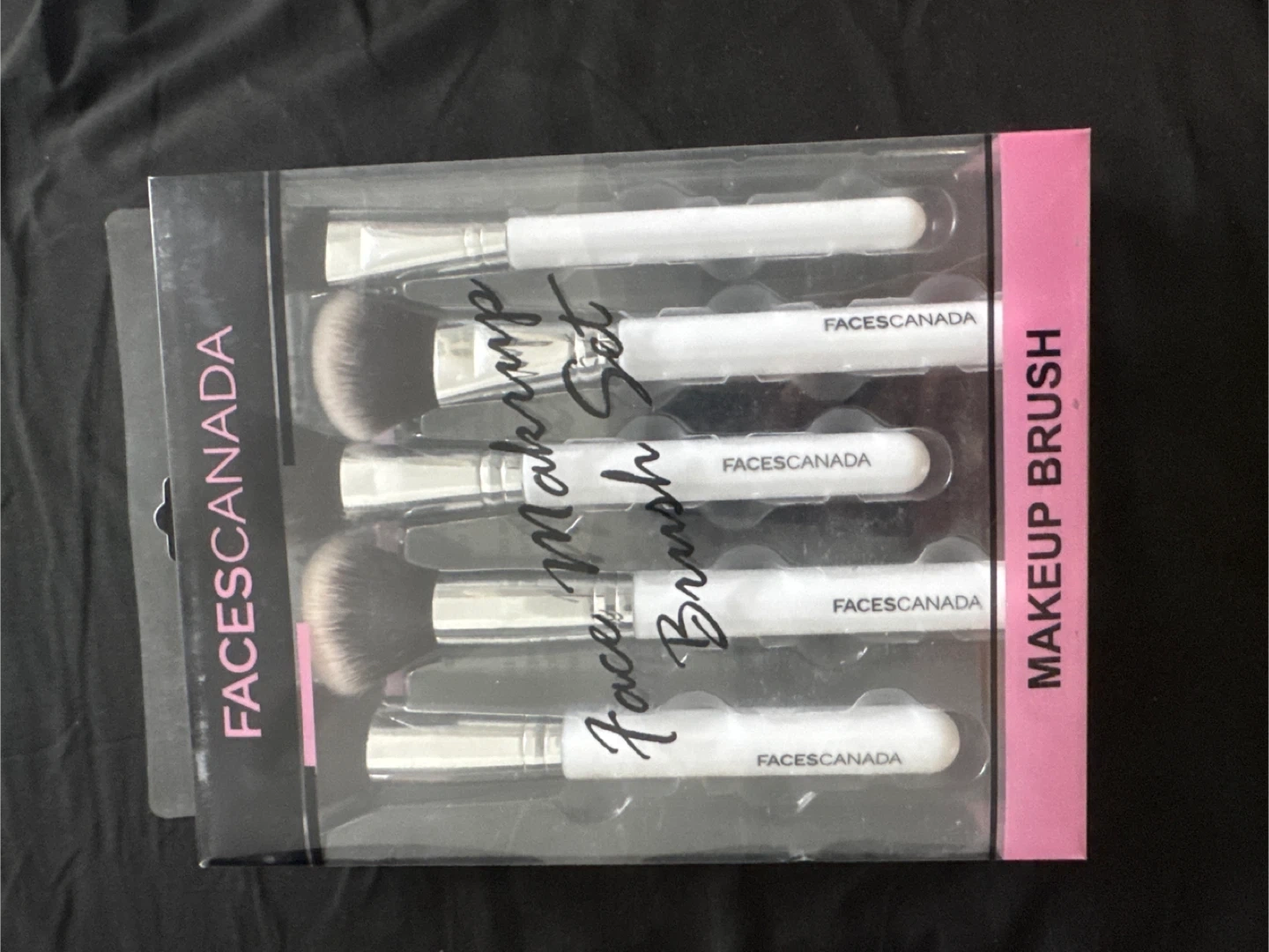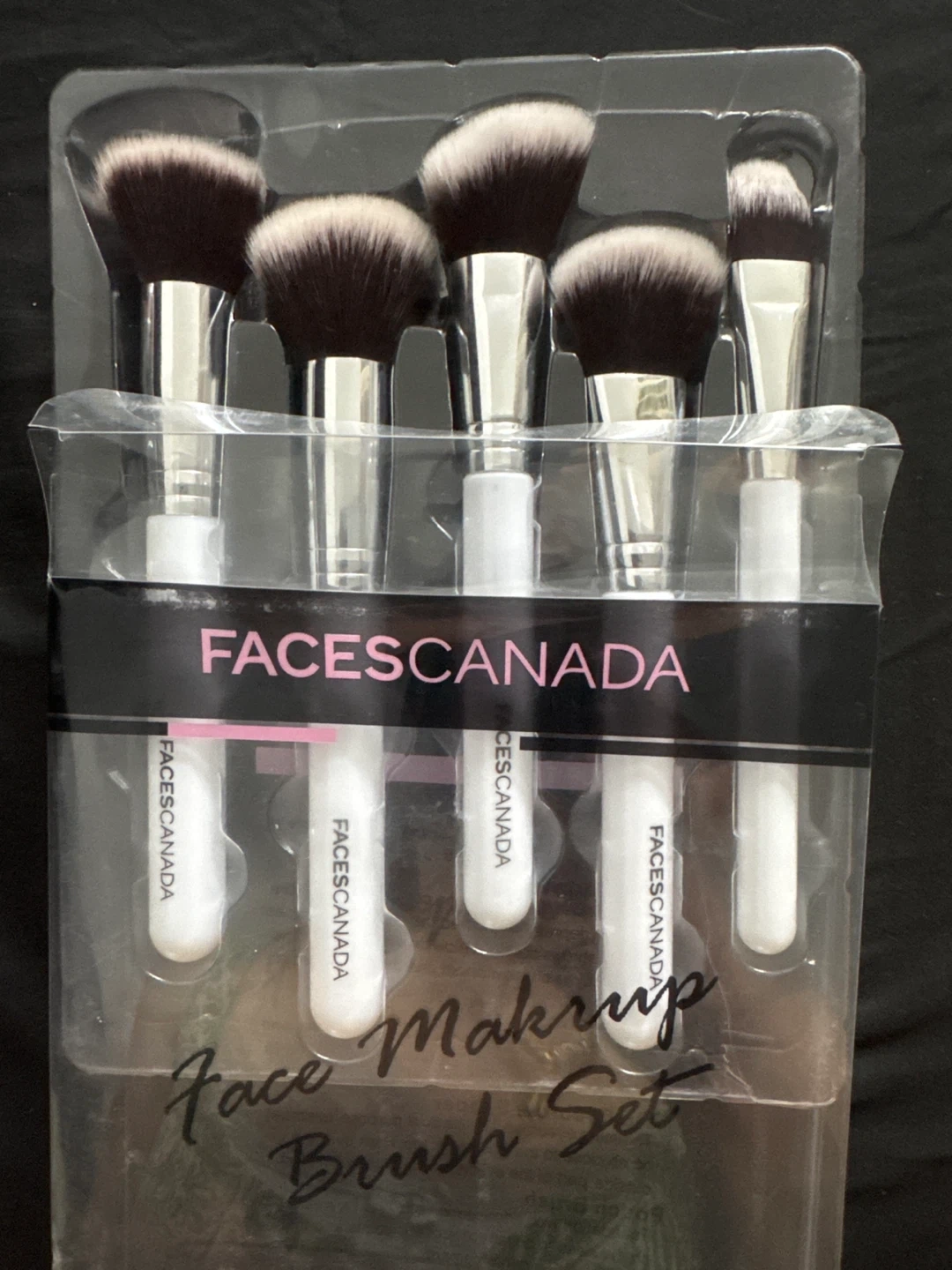 Selling a brand new Faces Canada Makeup Brush Set! It comes in its original packaging, never been used. Perfect for applying makeup smoothly and evenly. Great addition to your beauty routine!