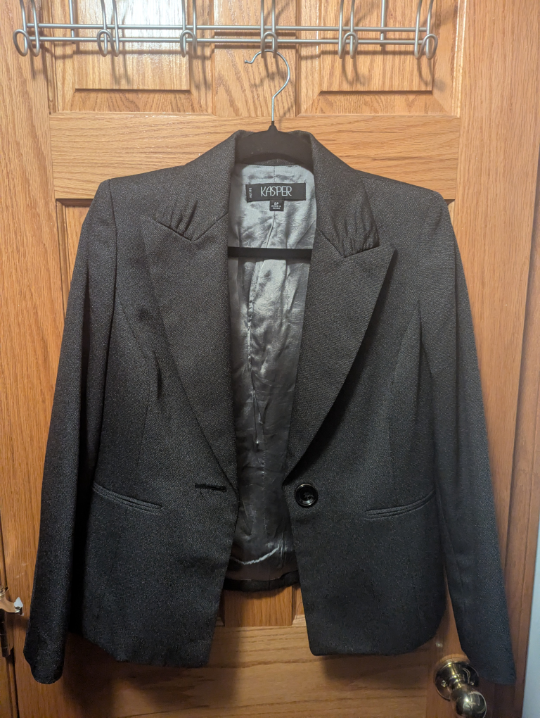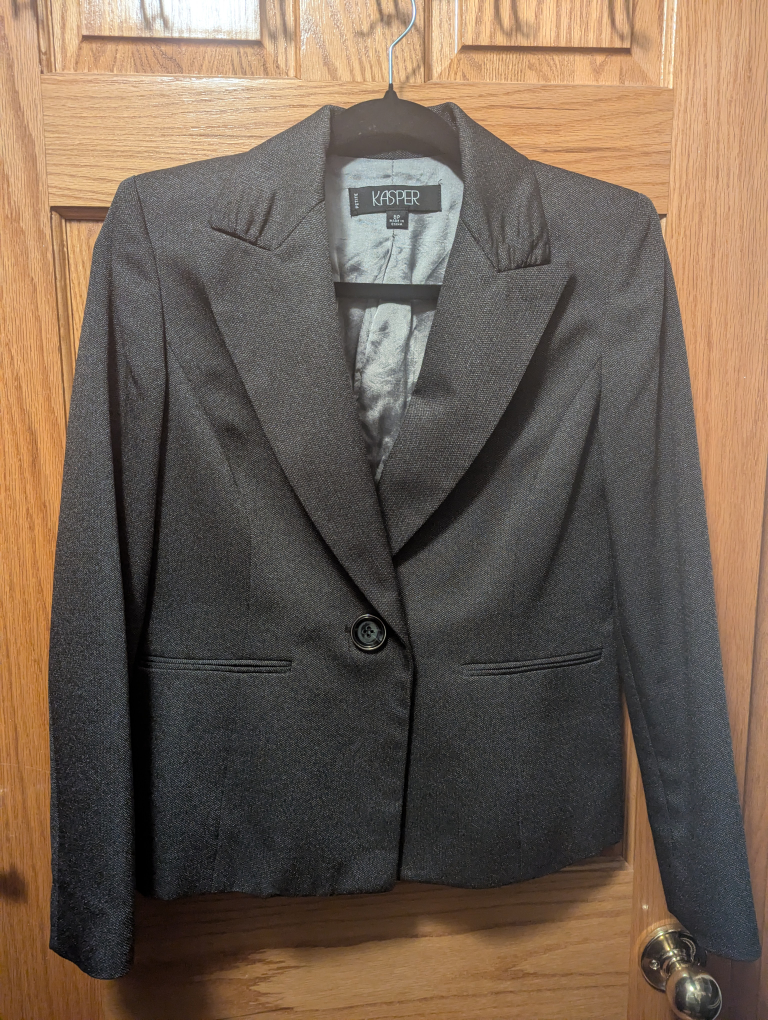 Selling a Kasper petite blazer in size 8P. It's a stylish and versatile piece that can be dressed up or down. Perfect for adding a touch of sophistication to any outfit, pickup in Uptown. If you bundle with any other listings, I can give you a discount!