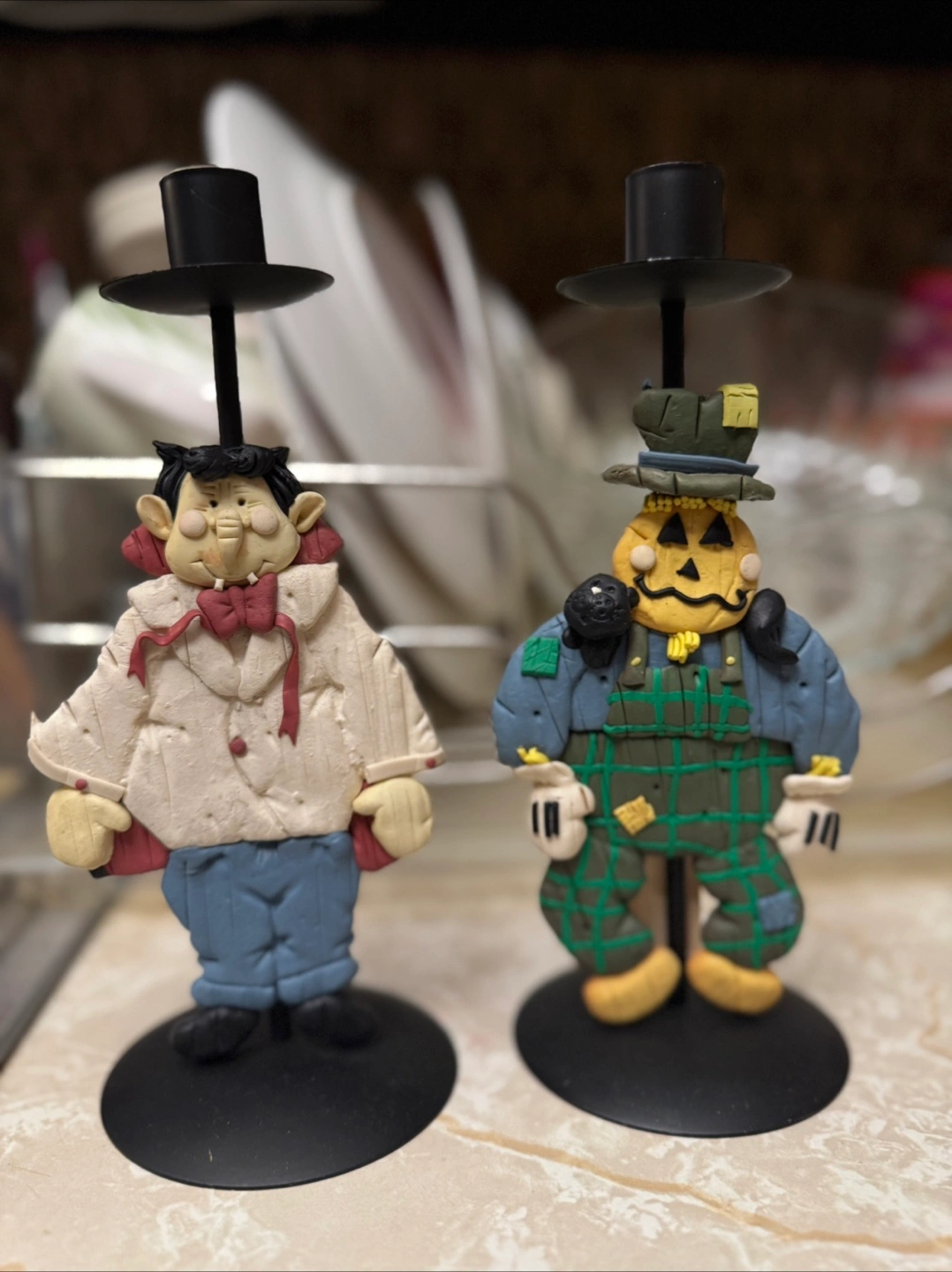 Halloween Vampire & Scarecrow Candle Holders