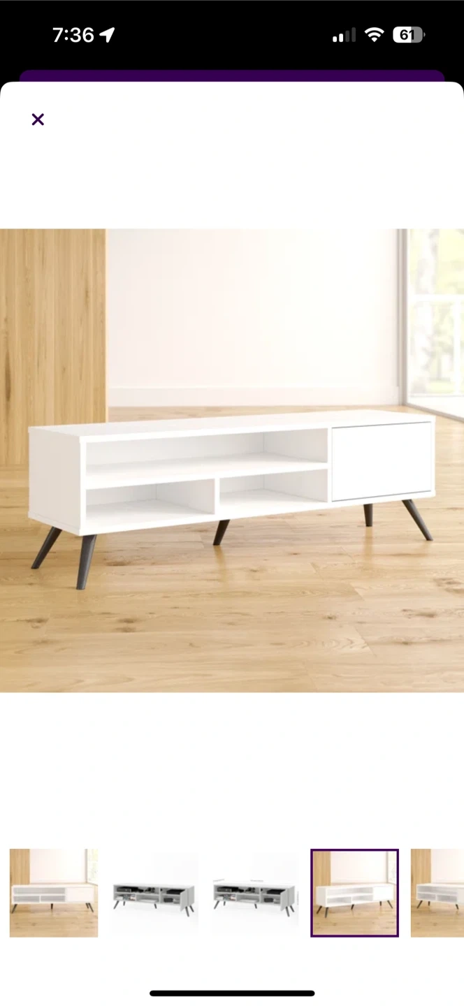 Selling a white TV stand in great condition! It fits TVs up to 60 inches.