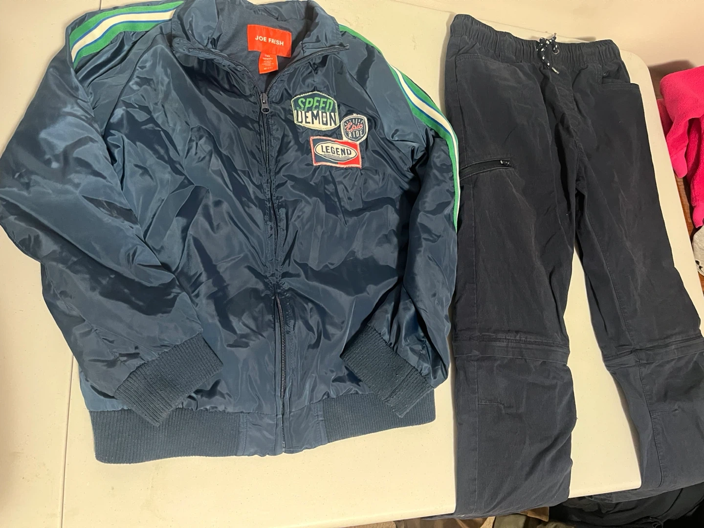 Selling a bundle of boys' clothing. Includes a Joe Fresh jacket, a long sleeve shirt with "Unstoppable" on the sleeves, and a pair of convertible pants. All in good condition and ready for a new home!