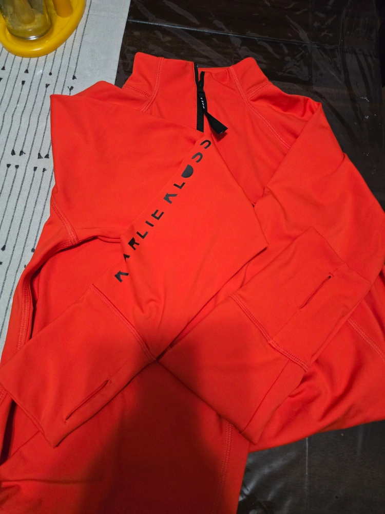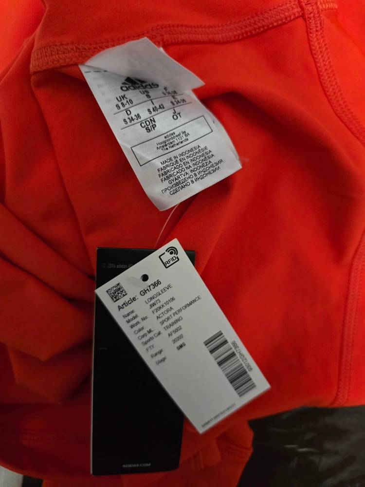 This is an Adidas x Karlie Kloss long sleeve top in a vibrant orange color! It's a size small and perfect for sports or training. The style is a long sleeve sport performance top.