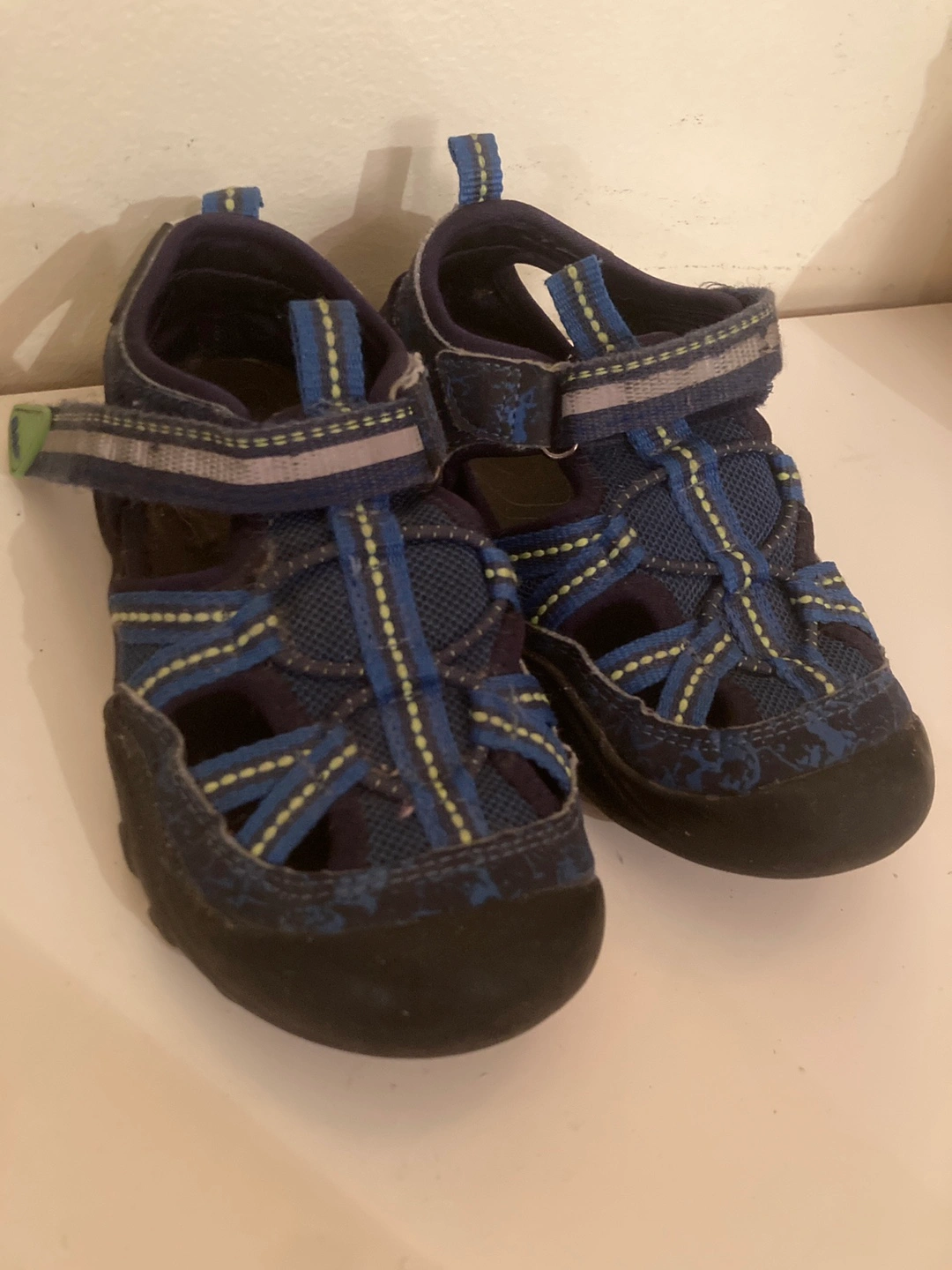 These M.A.P. Kids' Splash Ranger sandals are perfect for your little one's adventures! They feature a closed-toe design for protection and are in okay condition. The size is 11 US. These are great for playing outside or splashing in puddles