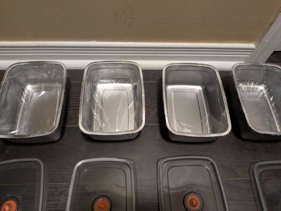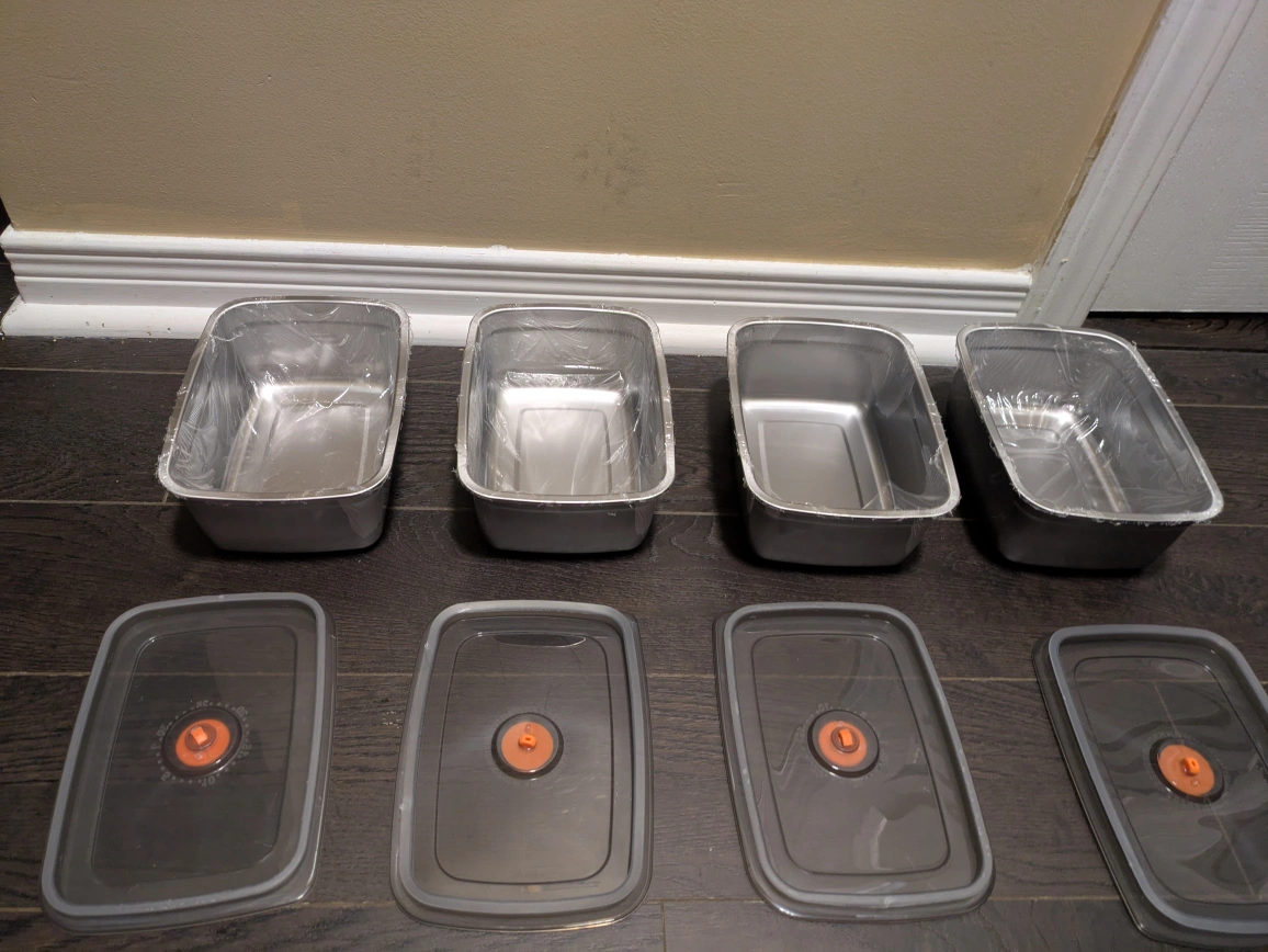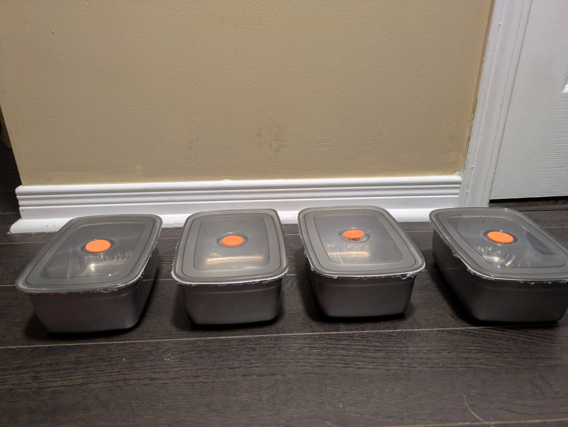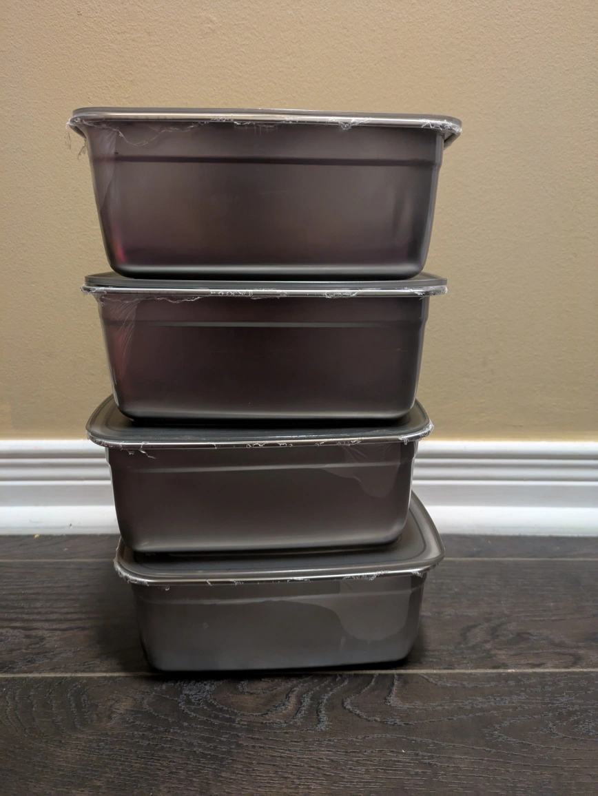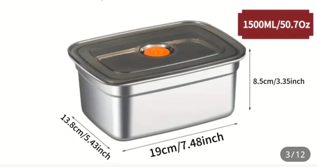 27Selling a set of 4 stainless steel food storage containers. They each hold 1500mL / 50.7oz. The dimensions are approximately 19cm x 13.8cm x 8.5cm (7.48in x 5.43in x 3.35in). These are great for meal prepping or storing leftovers!