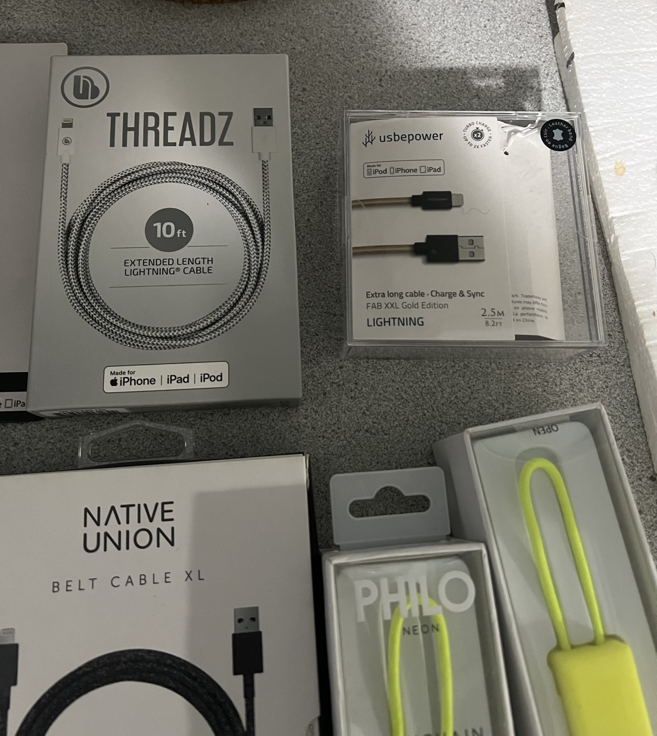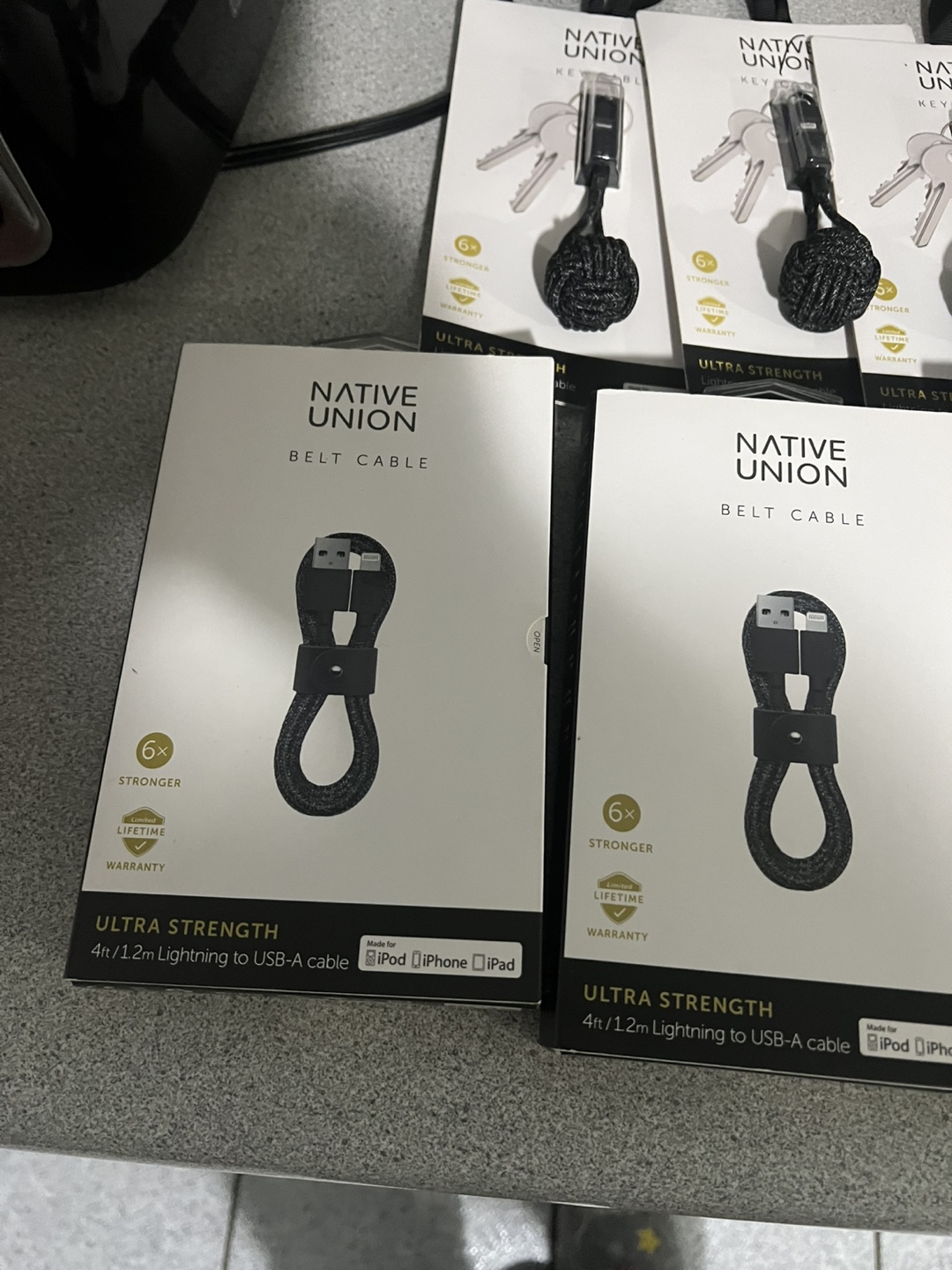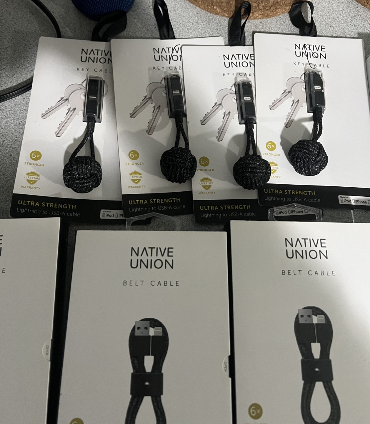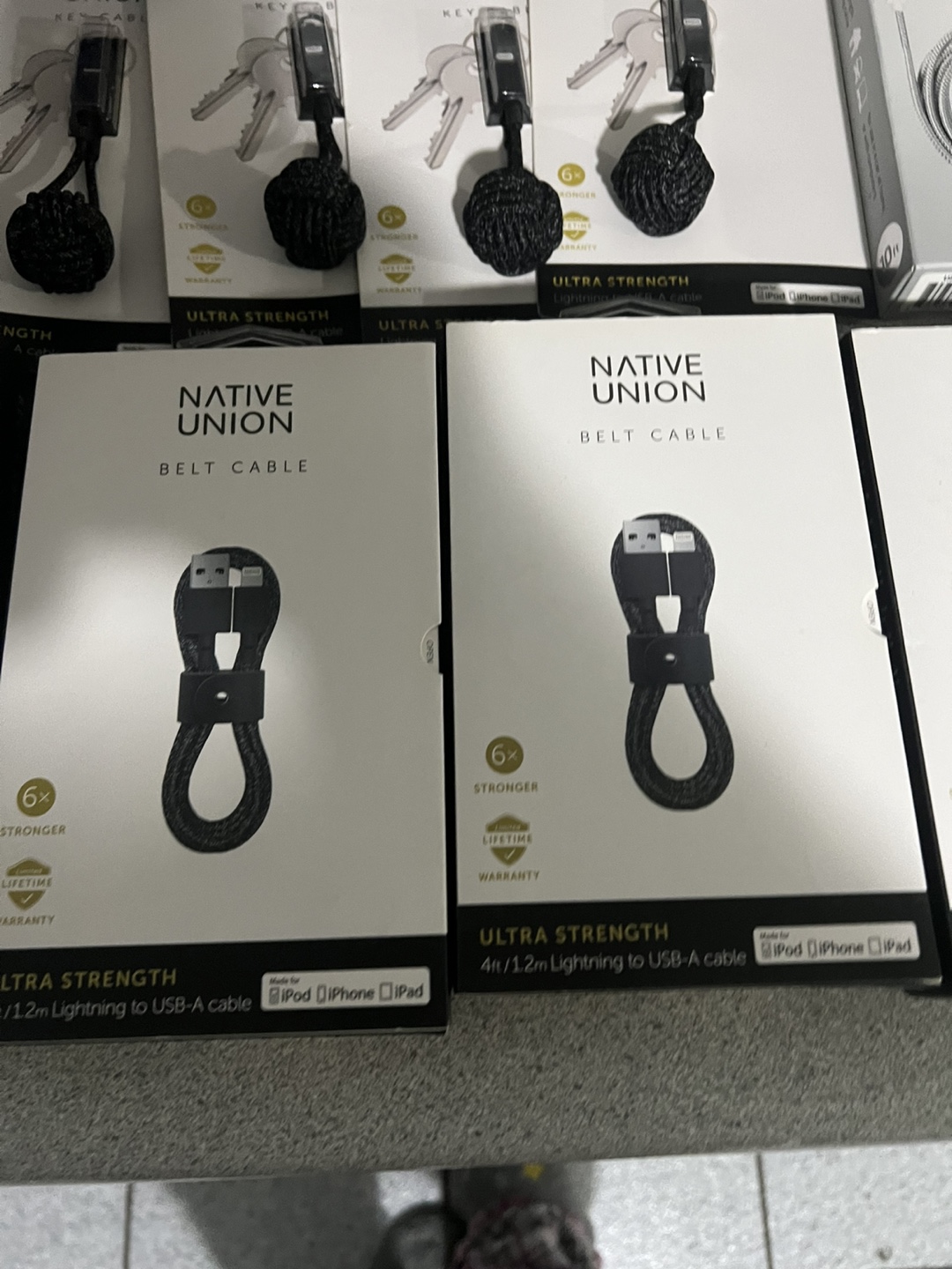 Selling a Native Union Belt Cable, Lightning to USB-A cable. It's an ultra strength cable, 4ft/1.2m long. It's compatible with iPod, iPhone, and iPad. The box is included!