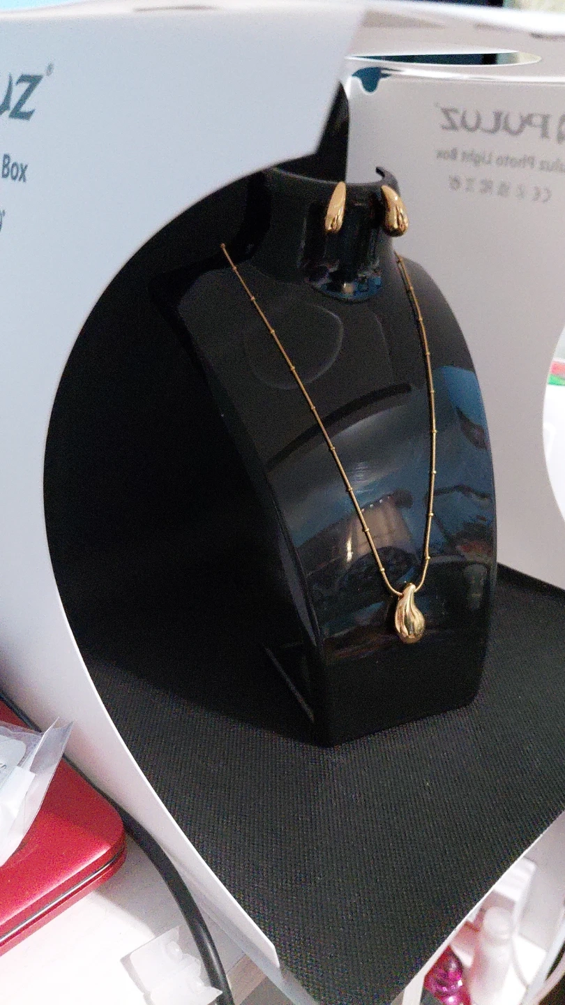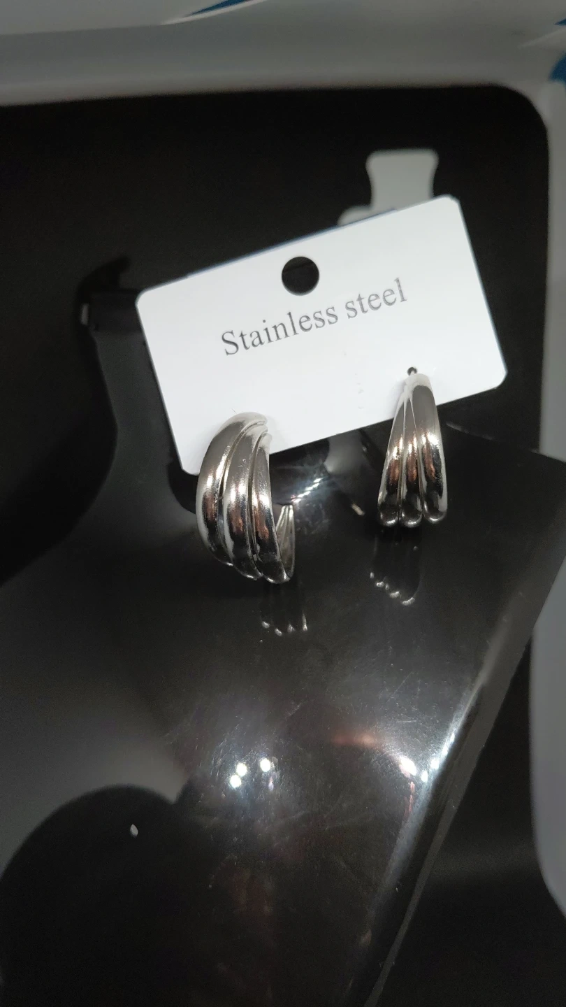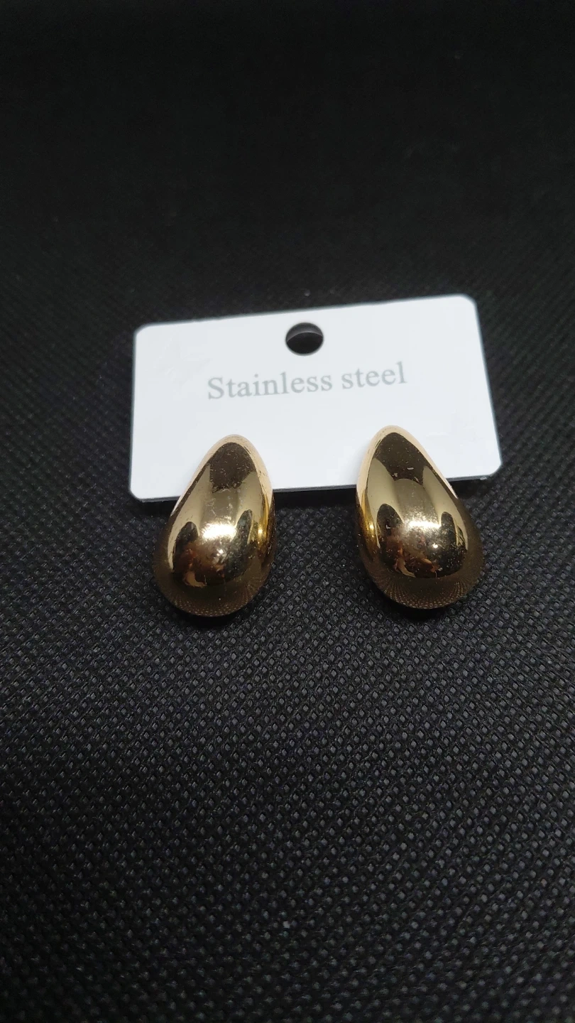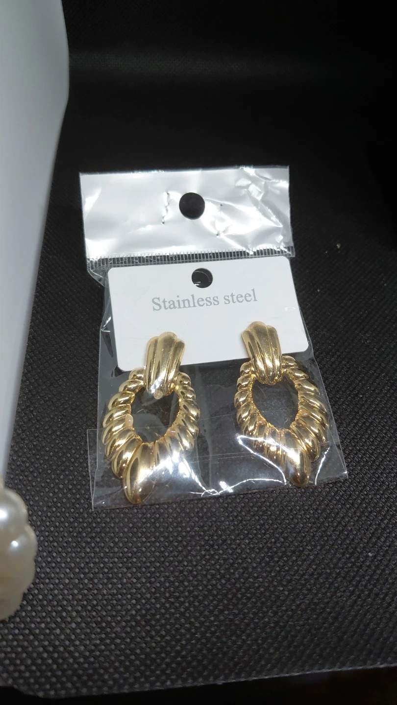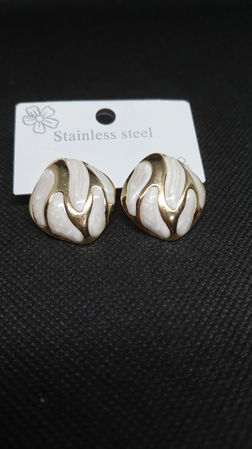 A pair of heart-shaped earrings with red and gold accents. They're made of stainless steel. These earrings add a pop of color to any outfit!