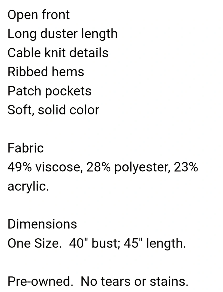 Women's One Size The Jetset Diaries Reina Cable knit long Cardigan retails for $199 like New from a smoke free home meetup location eglinton and dufferin area