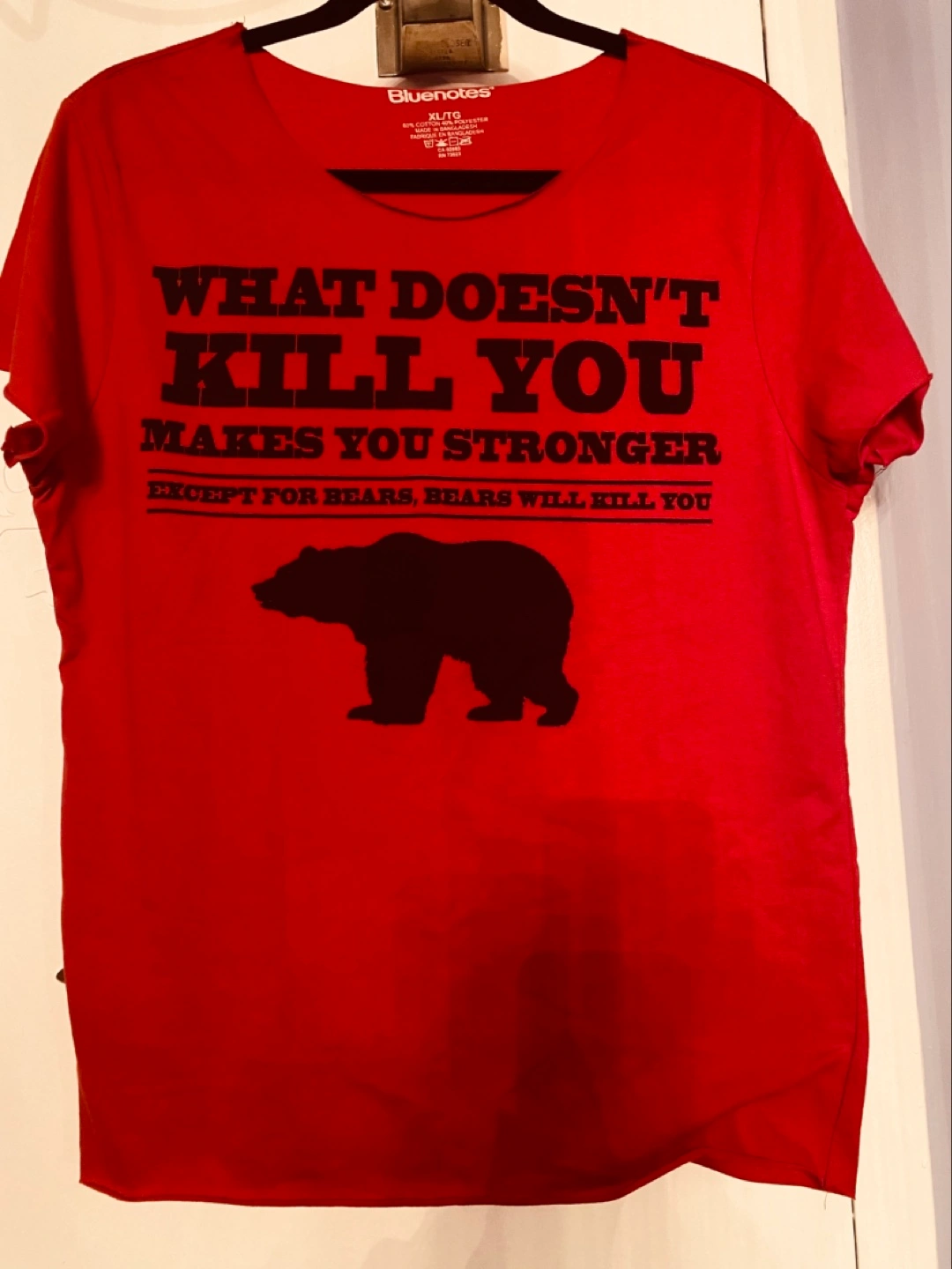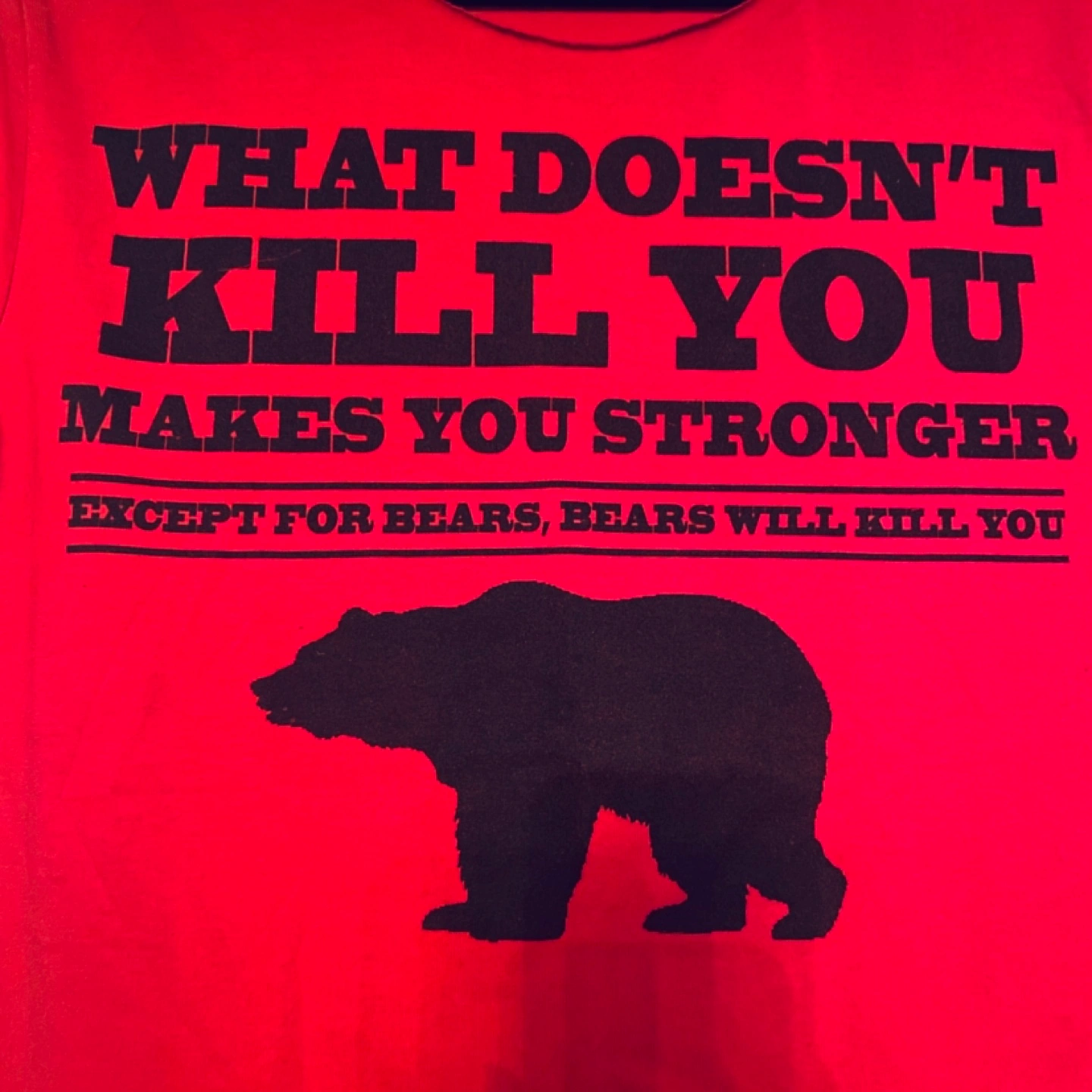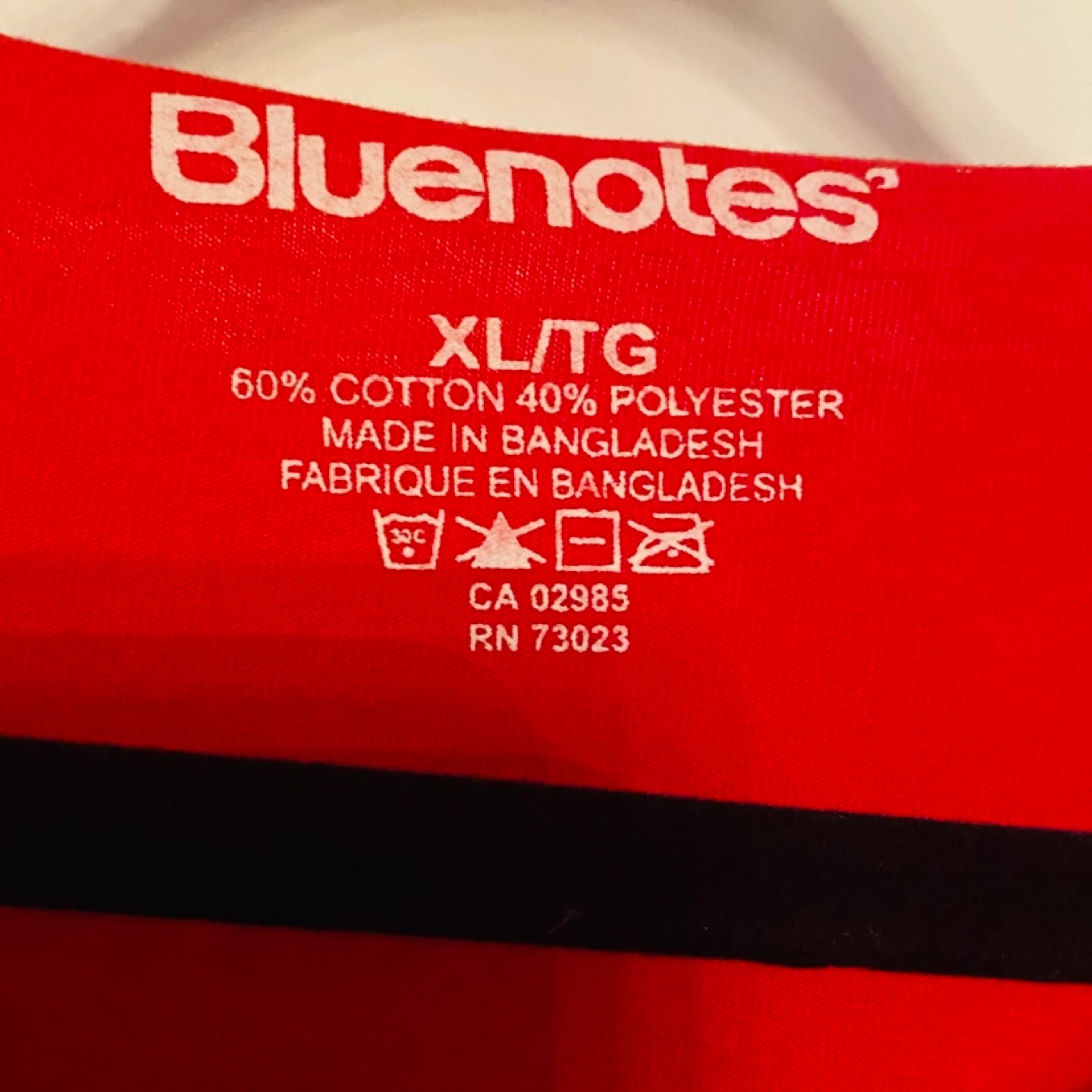 Red Bluenotes T-shirt with awesome Bear joke. It's made of 60% cotton and 40% polyester. Tag says XL but this fits more like small-medium. Distressed and hems cut for a grunge look. Super cute tee.