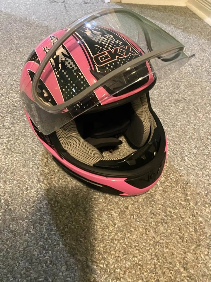 Selling brand new youth - size medium CKX VG K1 helmet. Impact resistant injection molding plastic shell. Fully ventilated. One-touch chin & forehead ventilated system. Removable / washable interior liners and cheek pads. Aerodynamically designed to reduce lifting. Proclip quick release mechanism. Meet or exceed DOT standard FMVSS218. Approximate weight: 1350g. Breath Guard and chin curtain included.