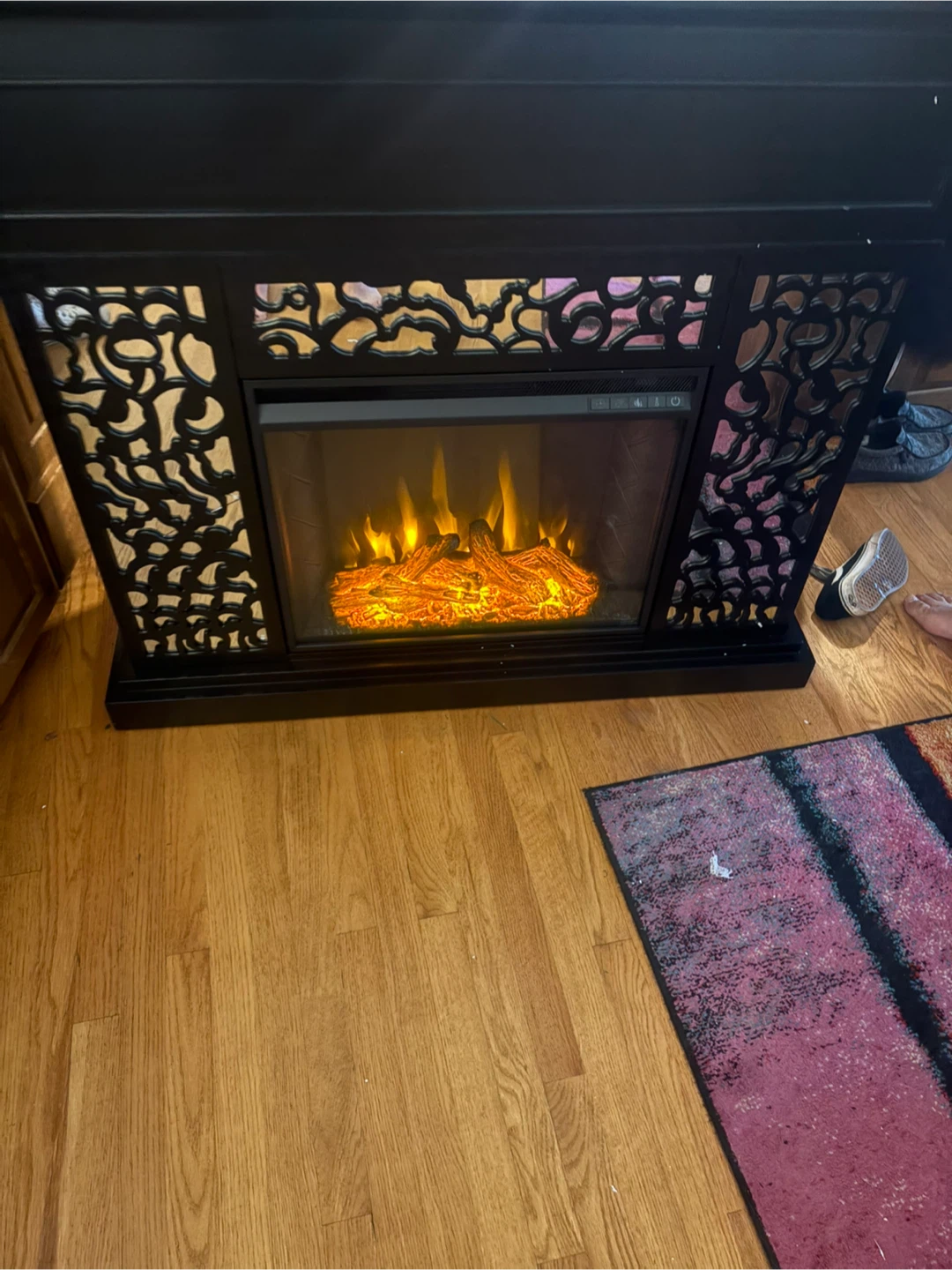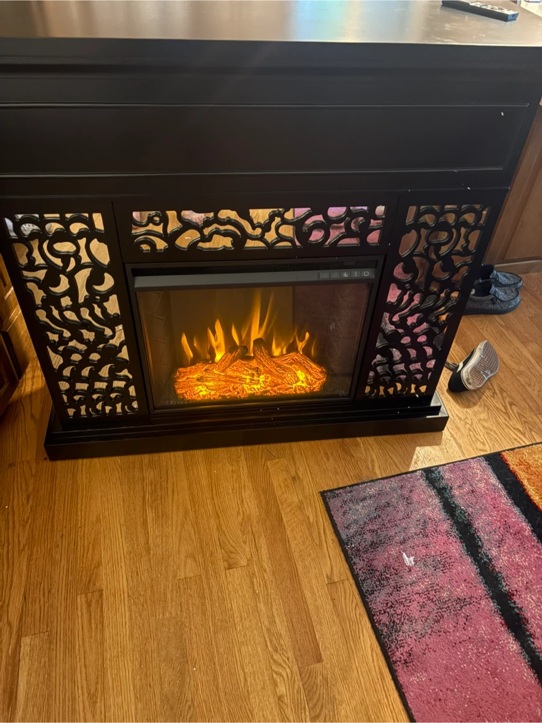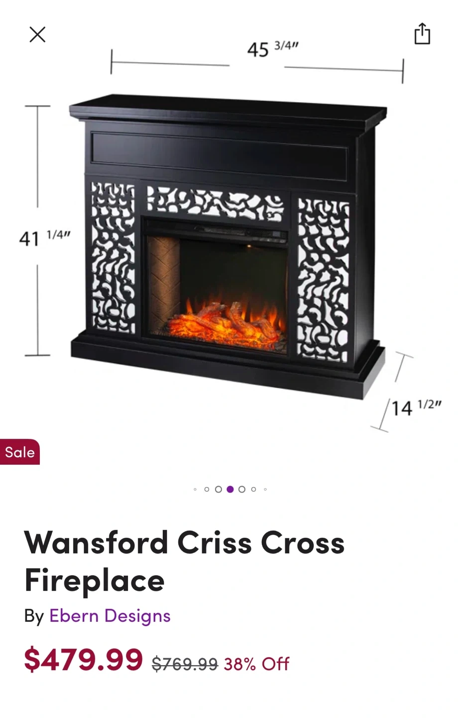 Selling a Wansford Criss Cross Fireplace by Ebern Designs. It is black with a mirror. Brand new. Just put it together and noticed there is a small crack in the mirror part on the left side.