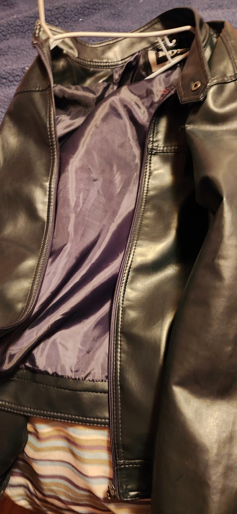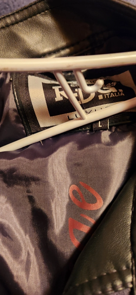 Here's a stylish RDZ Italia faux leather jacket in black, size large. It's in great shape and ready for a new home! The material is faux leather, giving it a sleek look and feel.