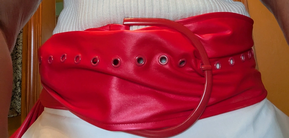 Orange faux leather belt. Eyelet detail down the front. Brand new with tag. Size: