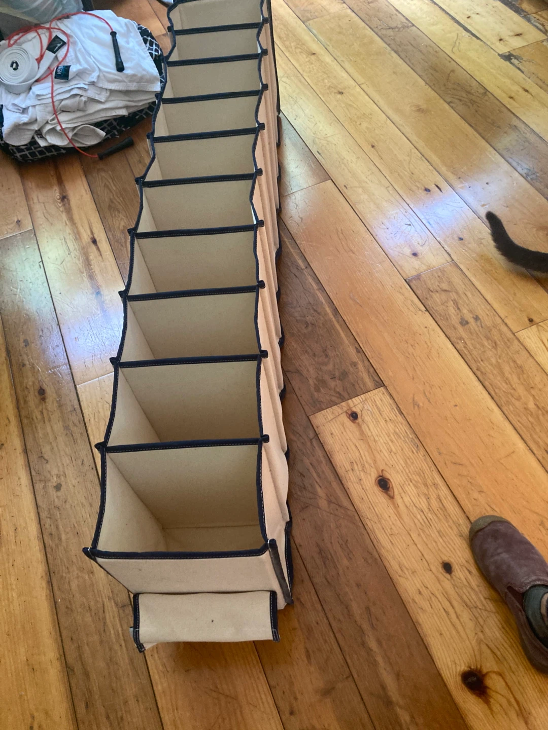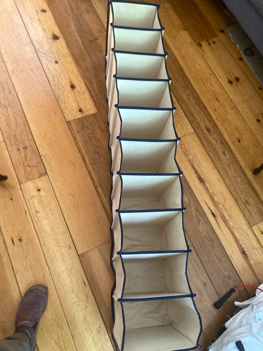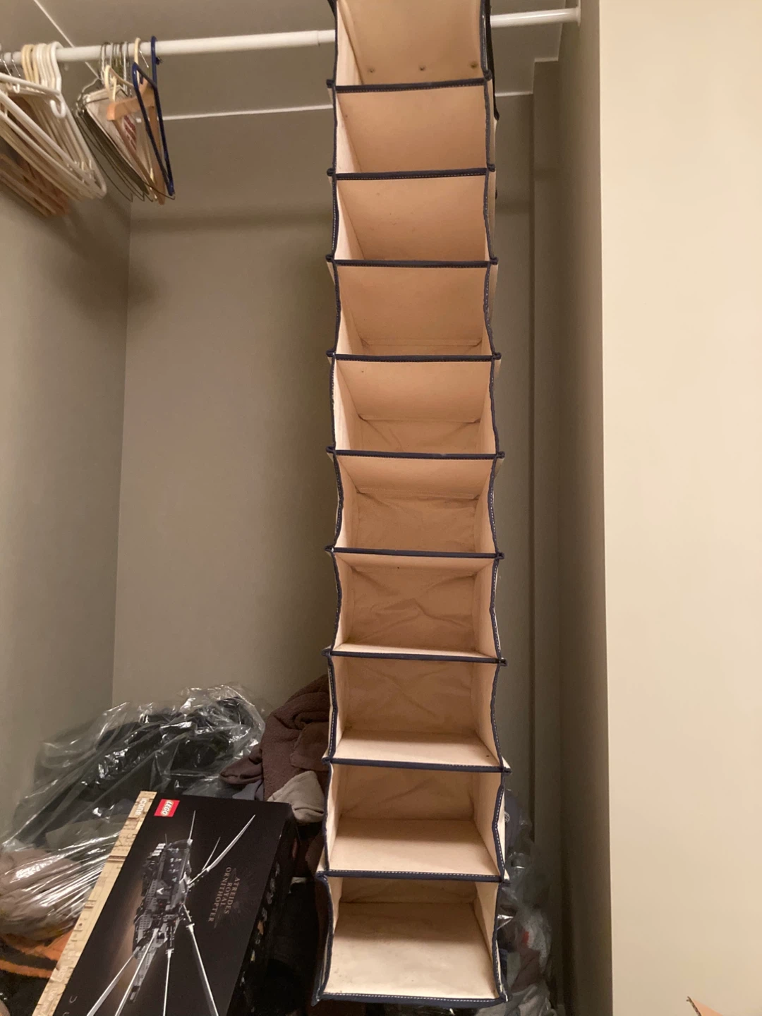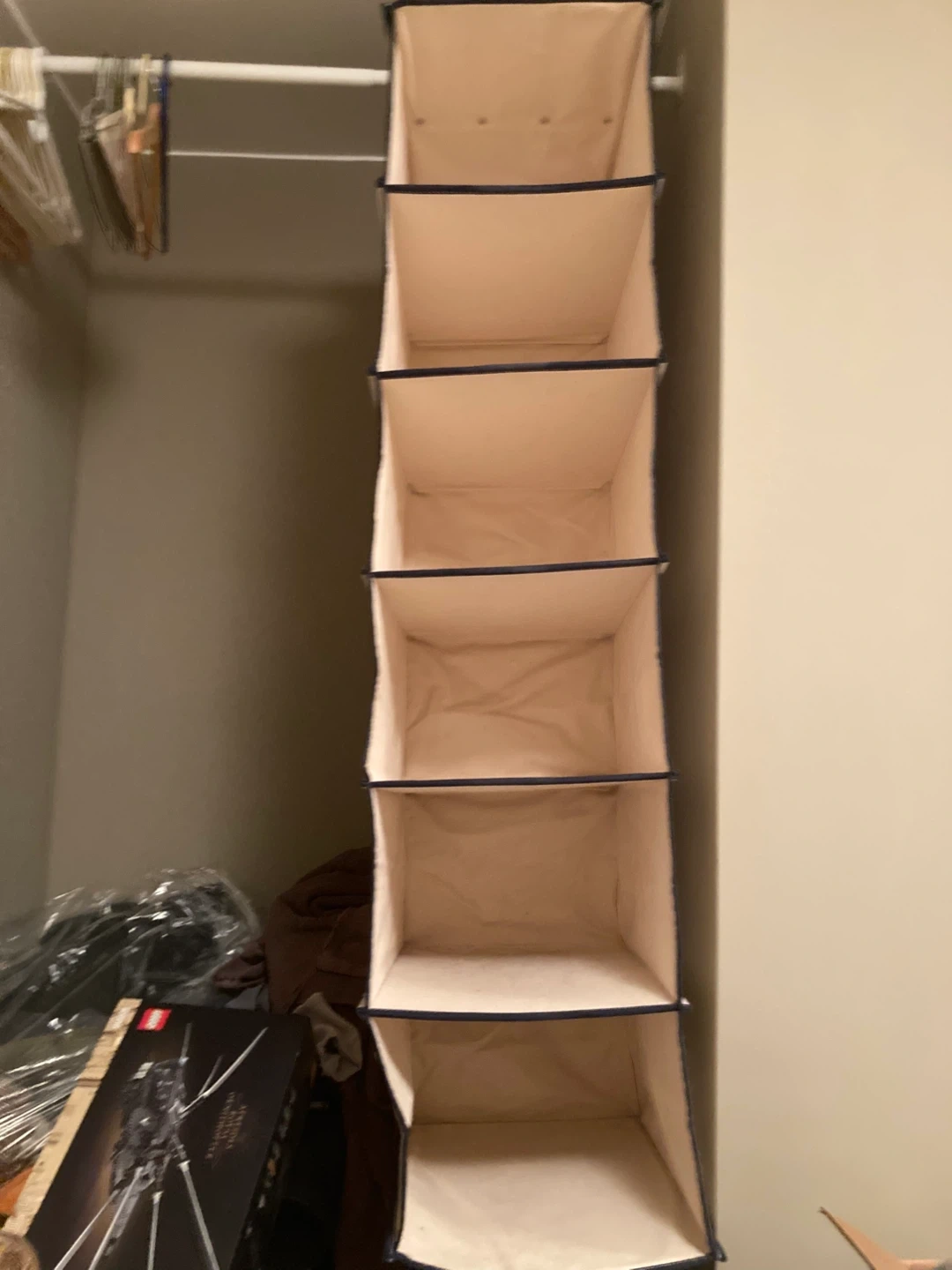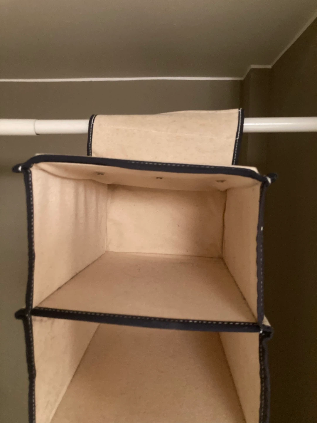 these heavy canvas closet organizers attach very securely by hook and loop. they are very strong and sturdy. i have 2 narrow organizers and 2 wider organizers. $4 each for the narrow, $6 each for the wider organizers $15 for all or best offer