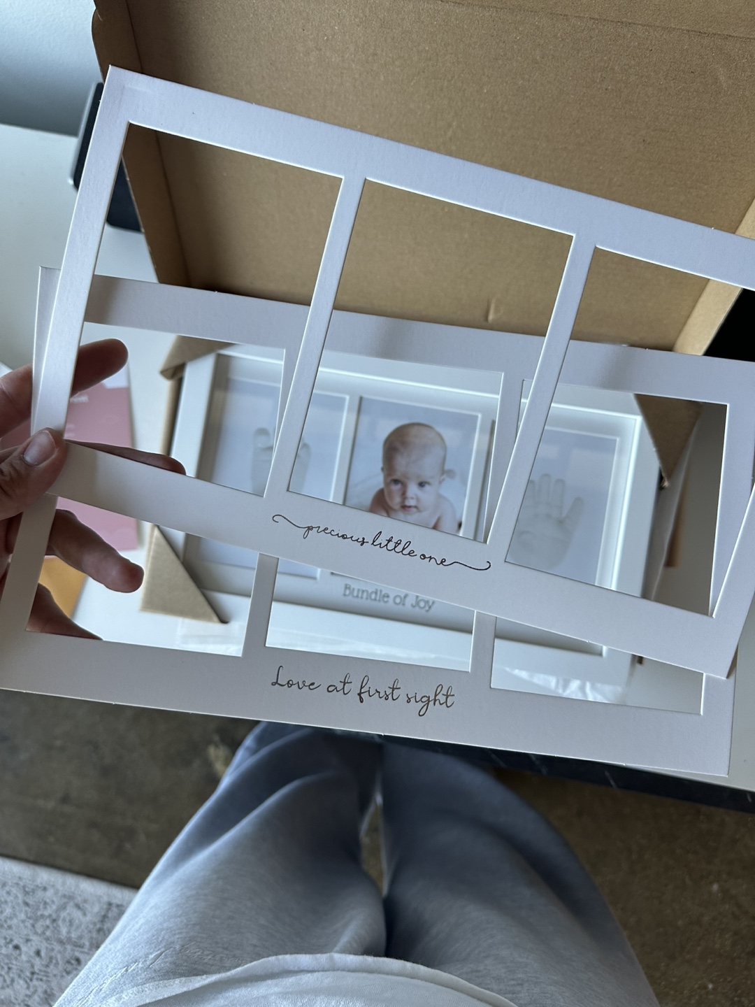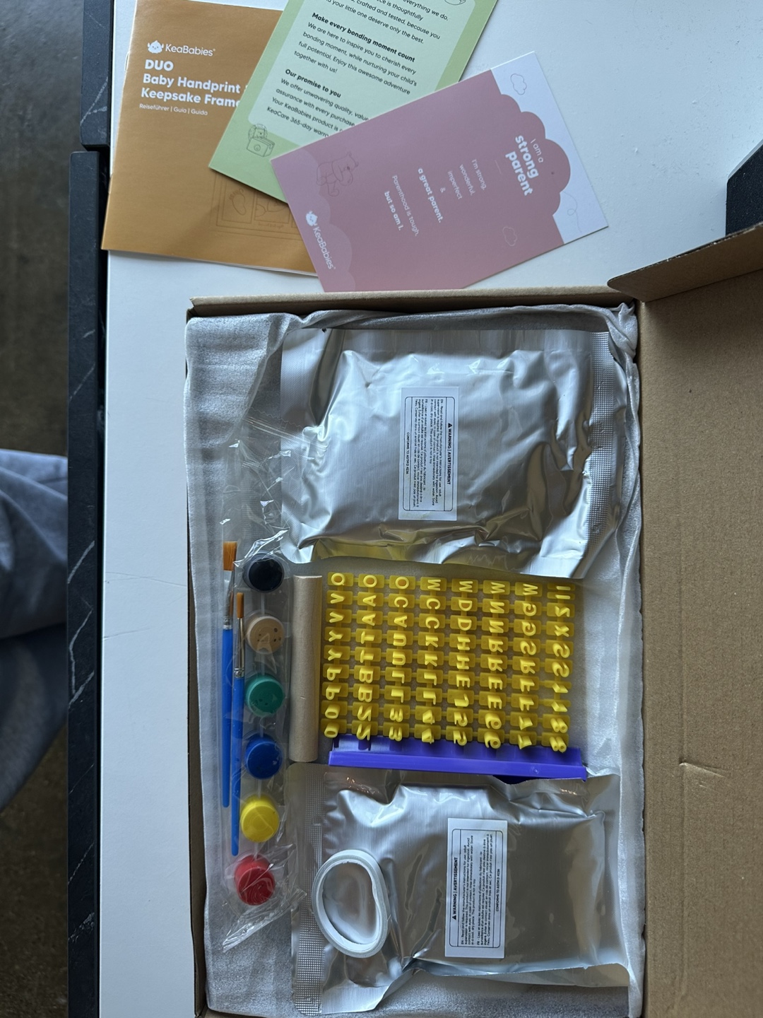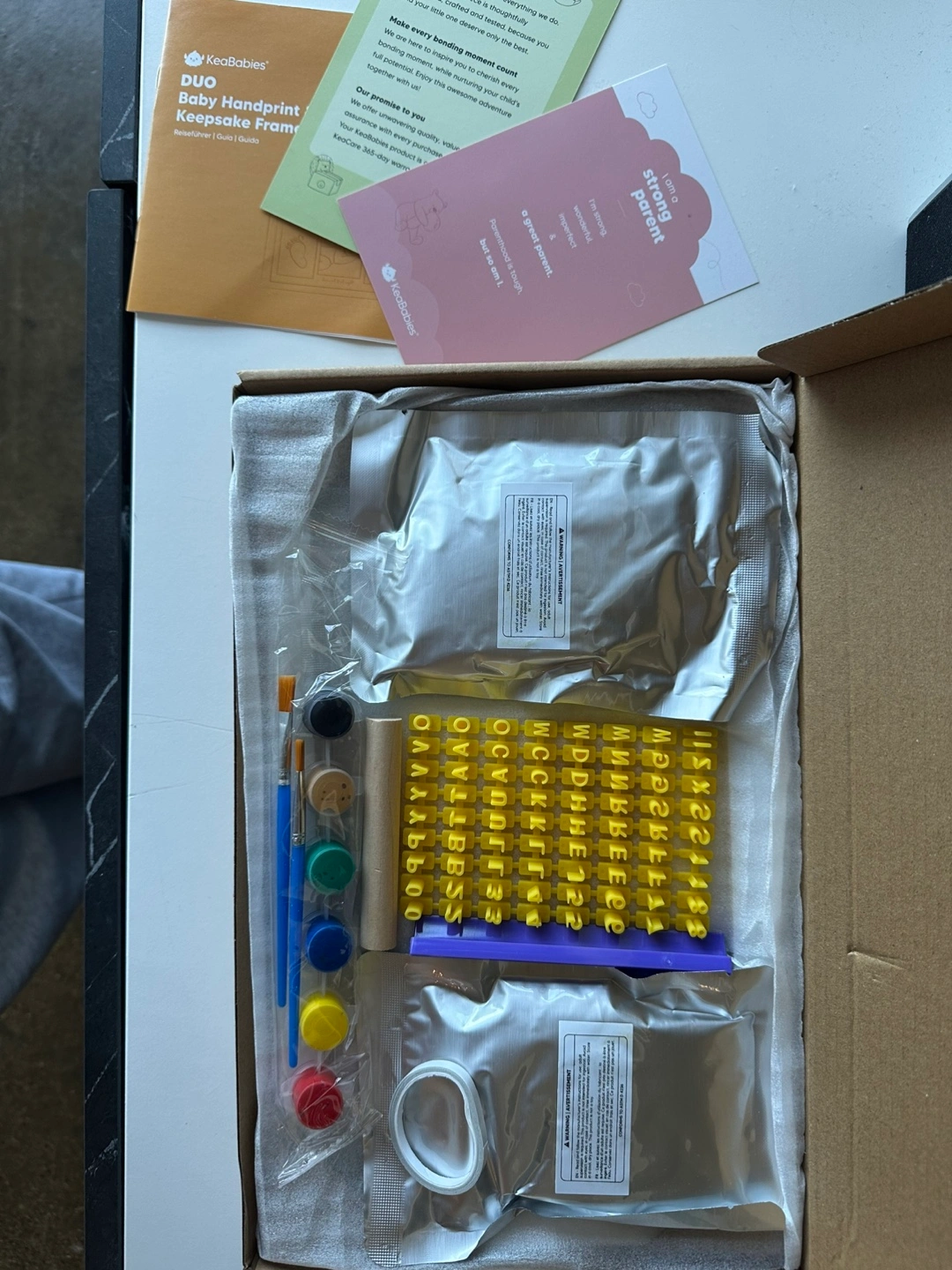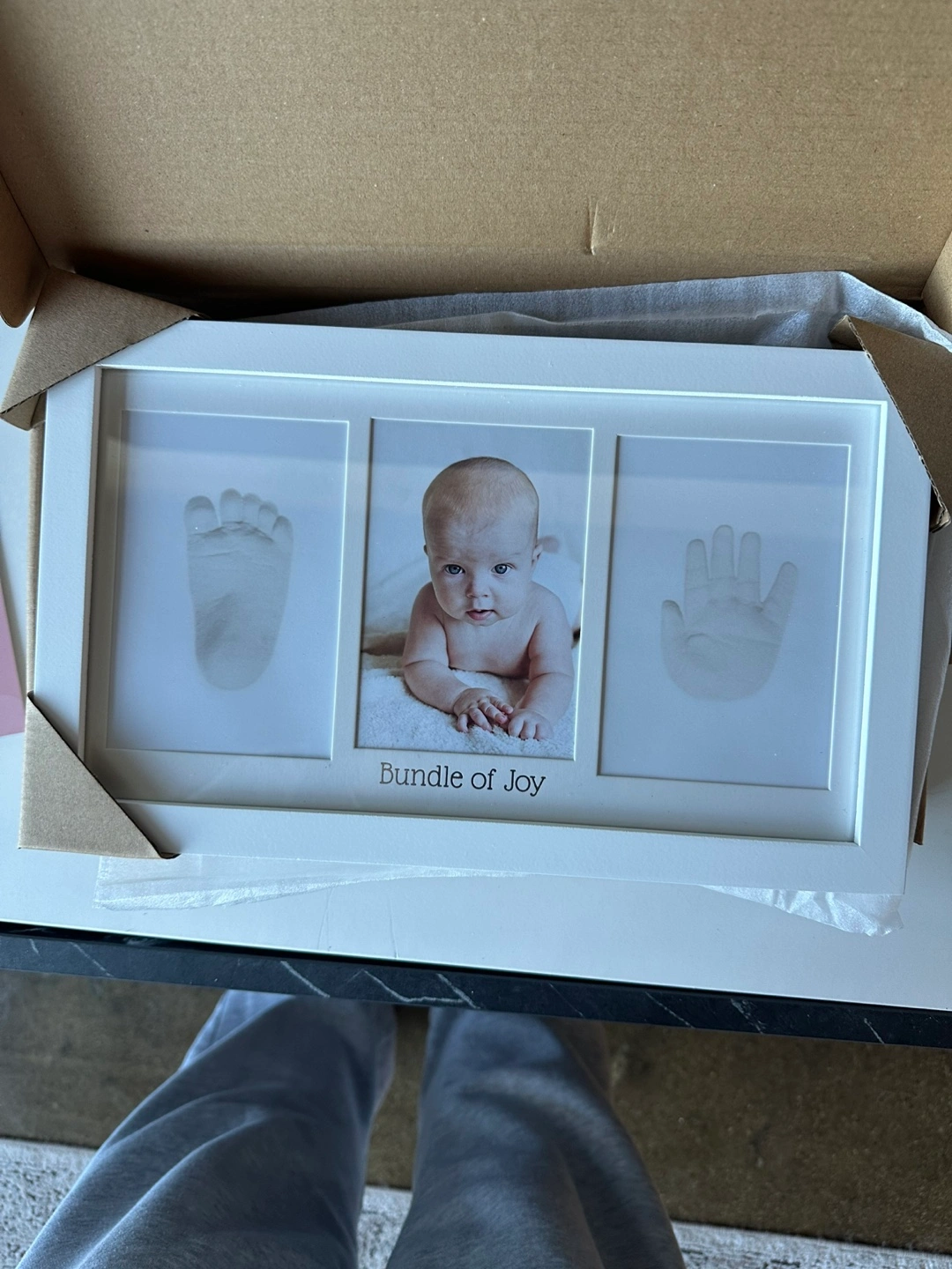 FREE Baby Handprint & Footprint Keepsake Frame! It comes with everything you need to create a lasting memory of your little one's tiny hands and feet. The set includes the frame, clay, paint, and letter stamps to personalize your keepsake. Brand new.