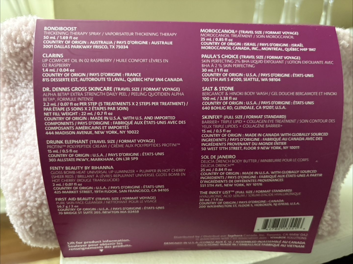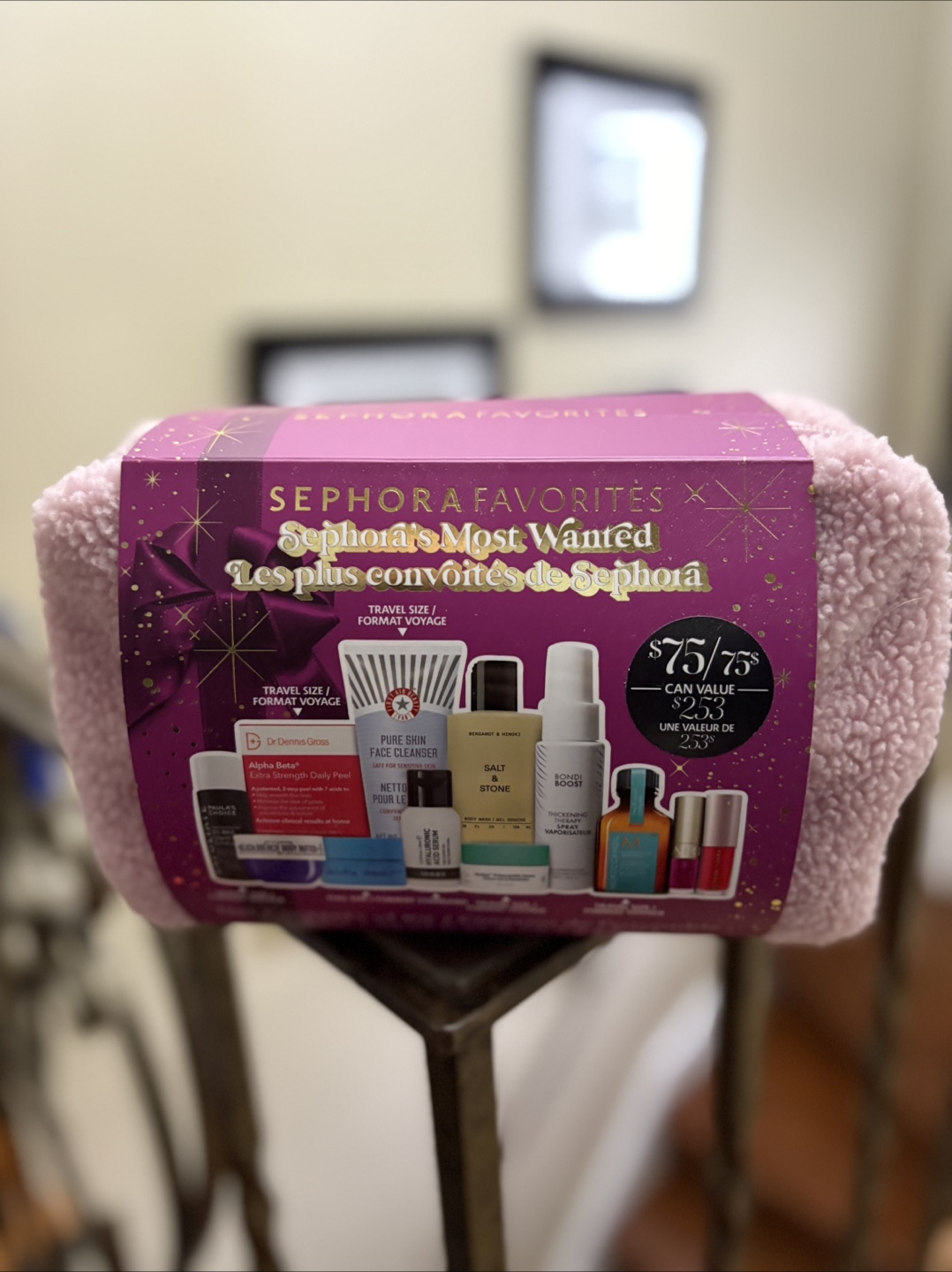 Selling a Sephora's Most Wanted travel size kit! This set includes a variety of popular skincare and beauty products in convenient travel sizes. It's a great way to try out new products or have your favourites on the go! The kit includes brands like Bondi Boost, Clarins, Dr. Dennis Gross Skincare, and more.