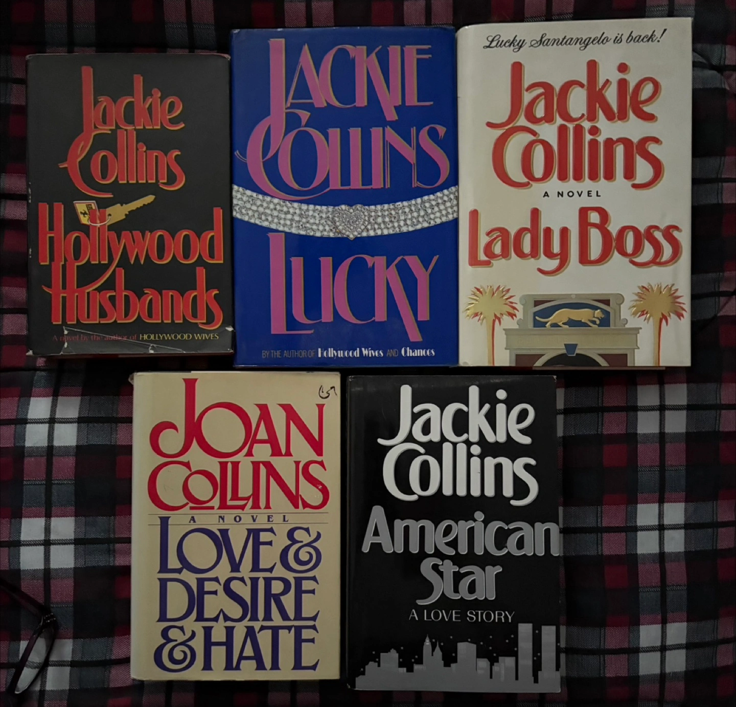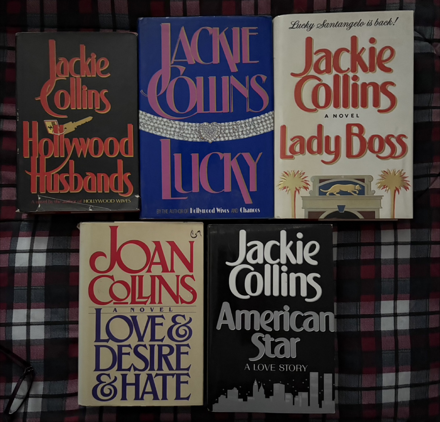 Selling a lot of books by Jackie Collins and Joan Collins. Titles include Hollywood Husbands, Lucky, Lady Boss, Love & Desire & Hate, and American Star. Great for a summer read!