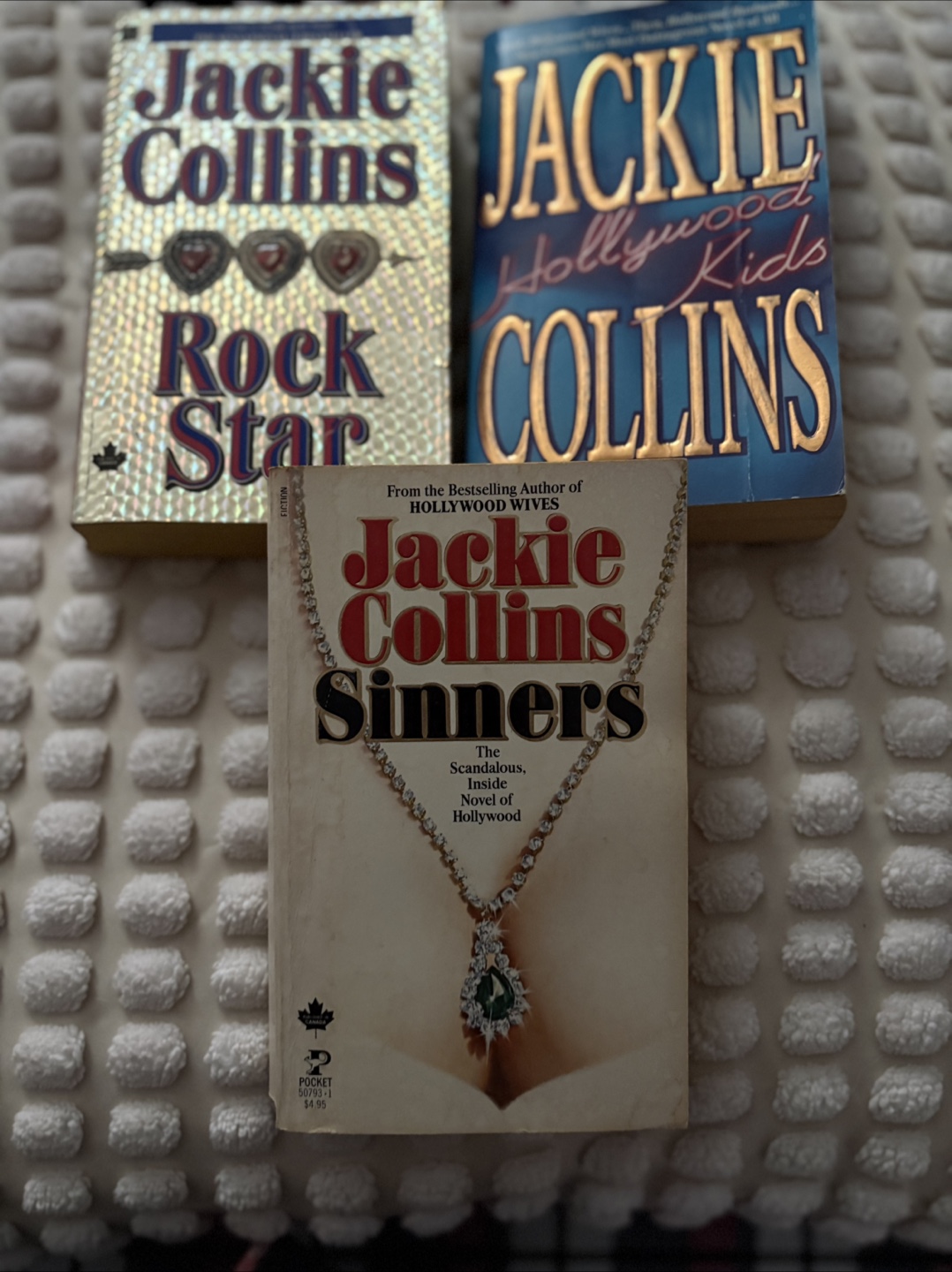 Selling a set of three Jackie Collins novels! Titles include Hollywood Kids, Sinners, and Rock Star. Perfect for anyone who enjoys a bit of scandalous Hollywood drama.