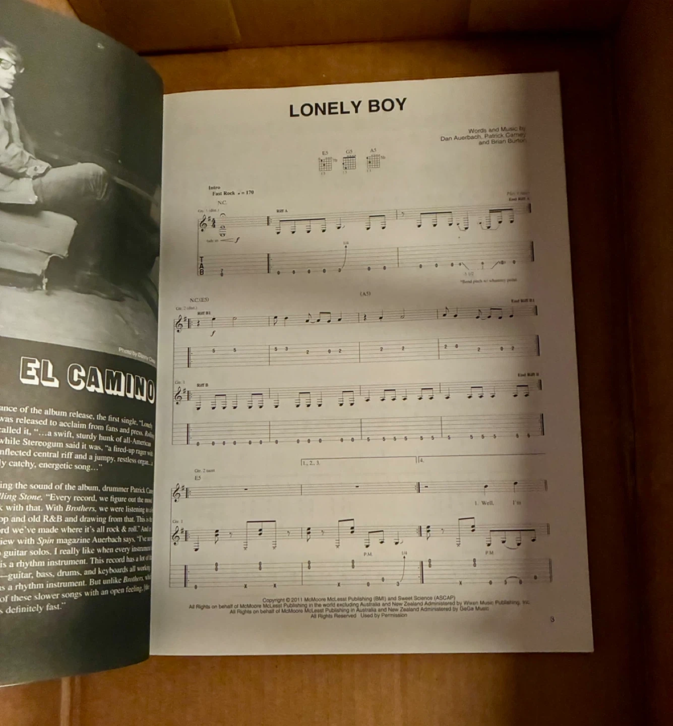 Selling a guitar tab book for The Black Keys' album El Camino. It's part of the 'Play It Like It Is Guitar' series. Great for any guitarist who wants to learn to play along with the album.