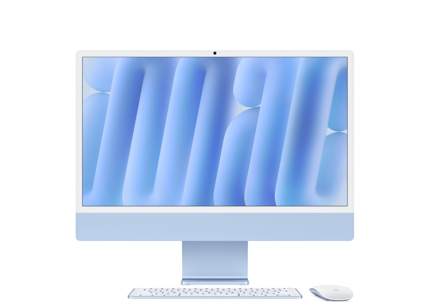 a lovely 24-inch iMac in blue! It's the perfect desktop for anyone looking for a sleek and powerful computer. Comes with the matching keyboard and mouse!